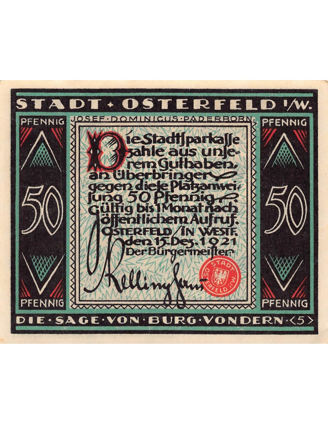 ALLEMAGNE, OSTERFELD - 50 PFENNIG 1921