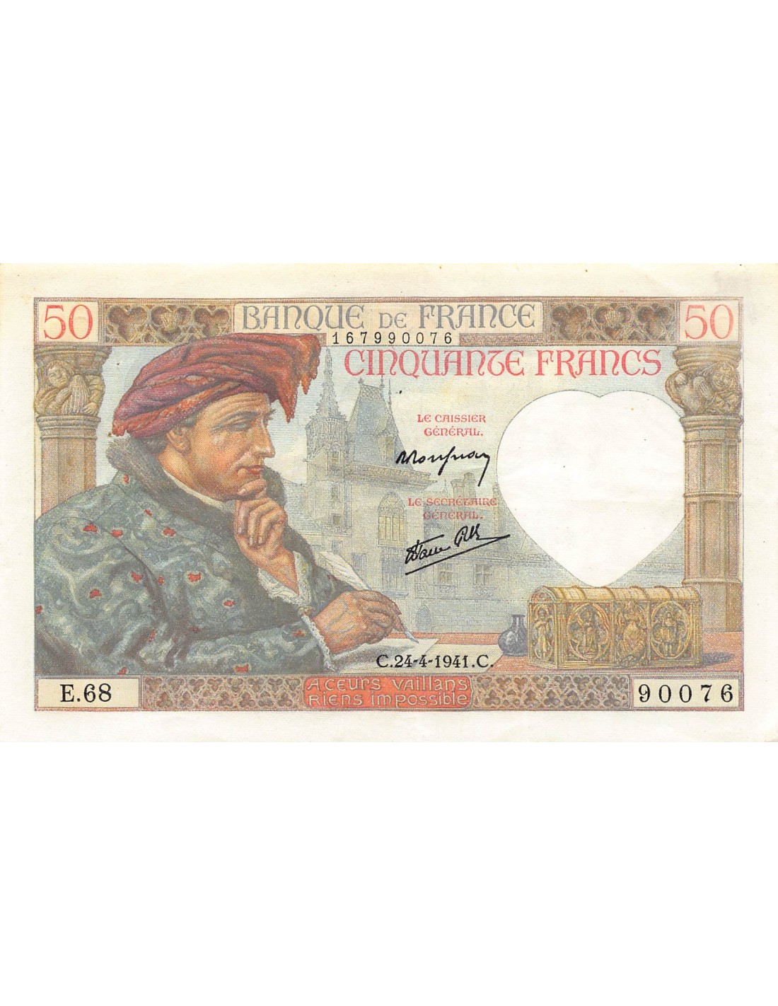 FRANCE, JACQUES COEUR - 50 FRANCS 24/04/1941 - SÉRIE E.68 - TTB+