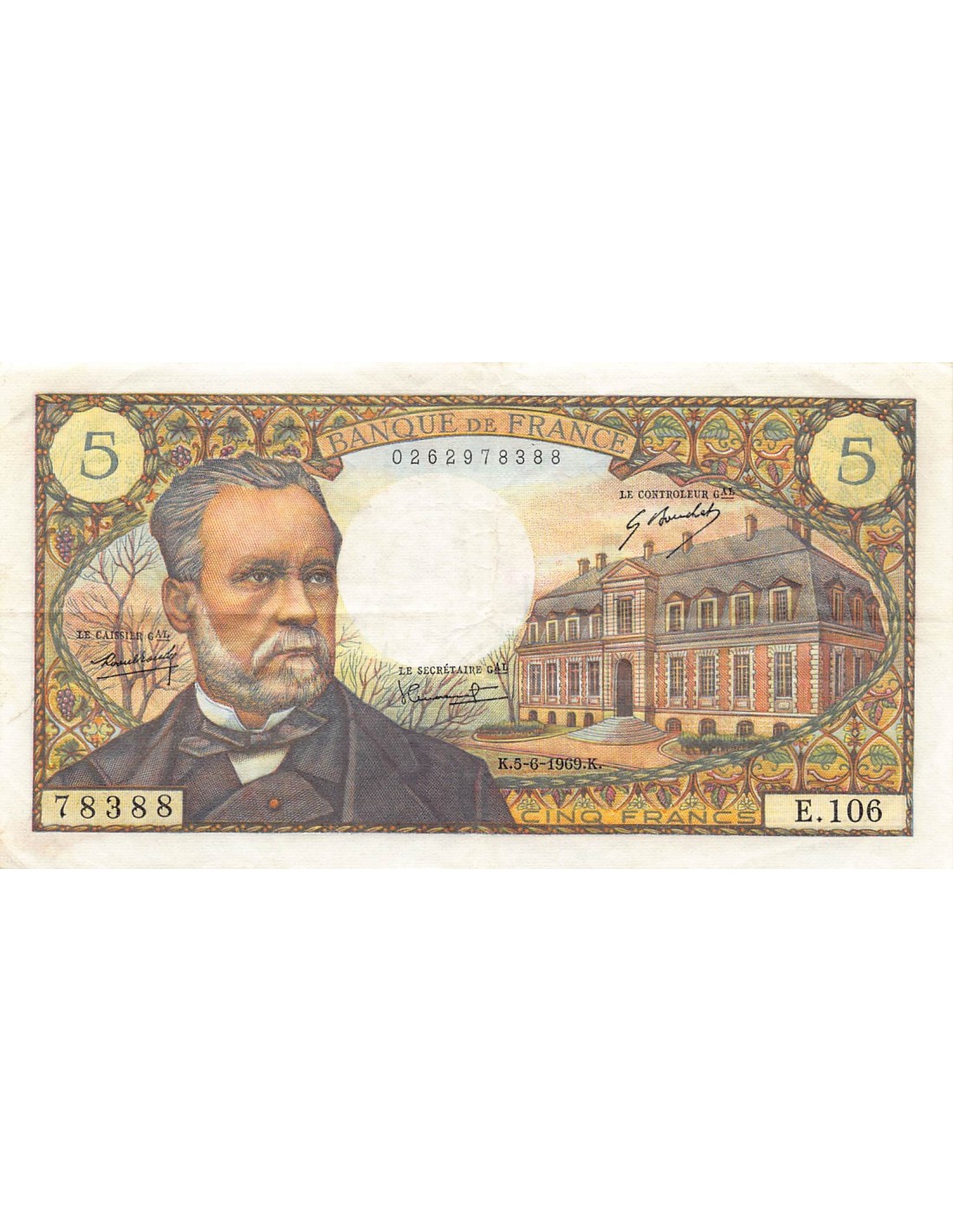FRANCE, LOUIS PASTEUR - 5 FRANCS 05/06/1969 - SÉRIE E.106 - TTB