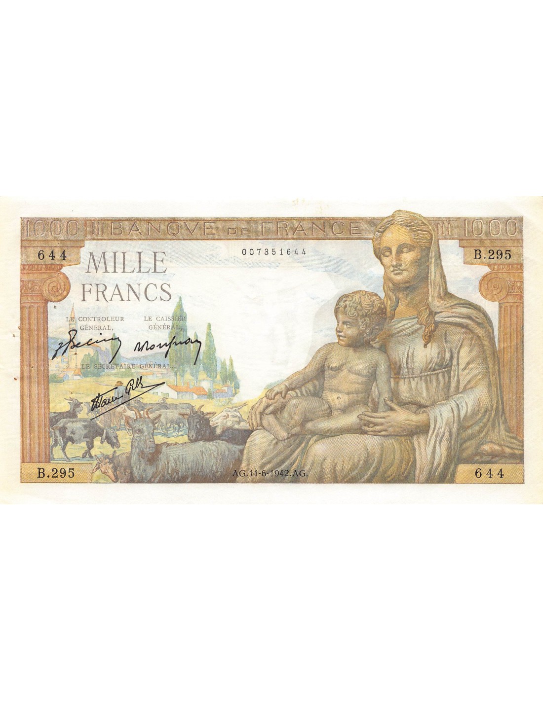 FRANCE, DEMETER - 1000 FRANCS 11/06/1942 - TTB+
