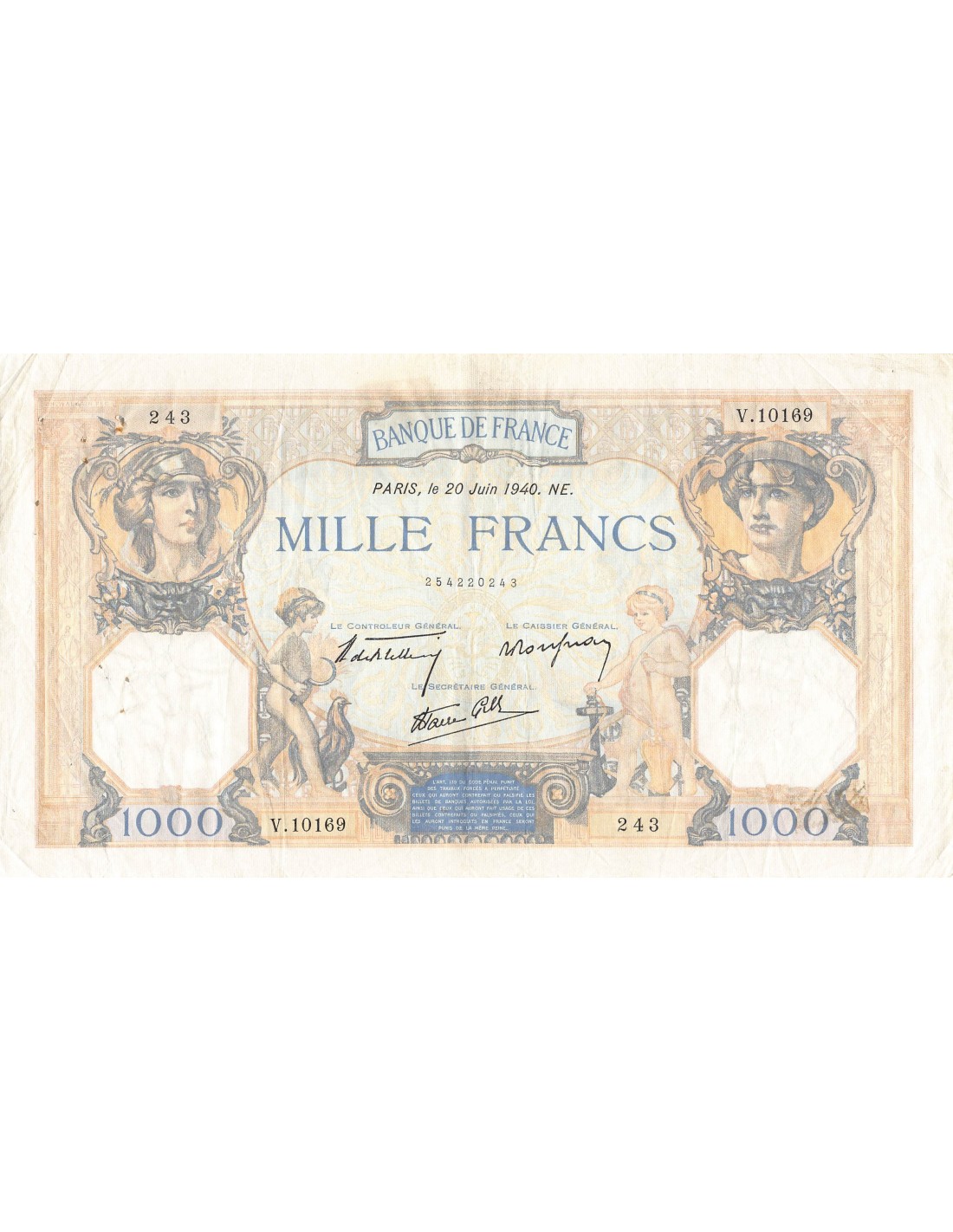 FRANCE, CÉRÈS ET MERCURE - 1000 FRANCS 20/06/1940 - PTTB