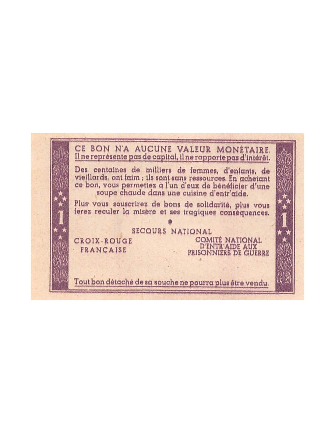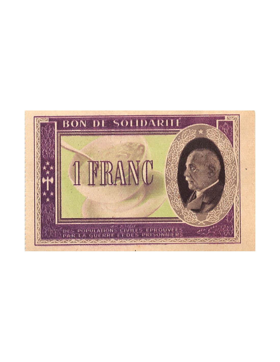ETAT FRANCAIS, MARECHAL PETAIN - BON DE SOLIDARITE 1 FRANC 1941 - SUP