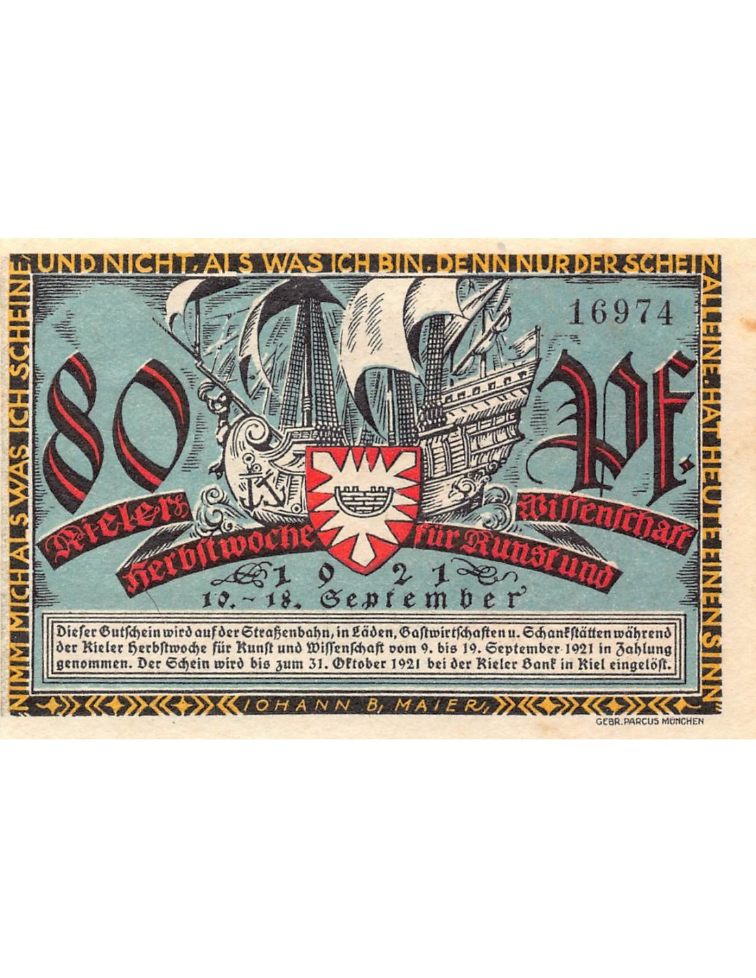 ALLEMAGNE, KIEL - 80 PFENNIG 1921