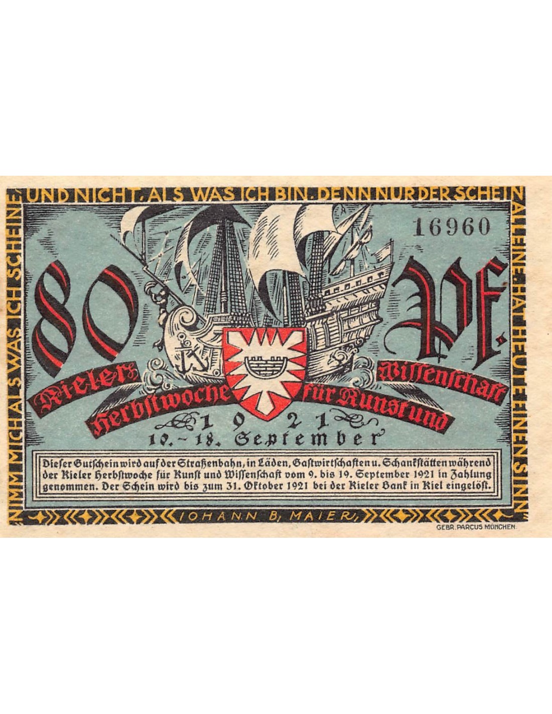ALLEMAGNE, KIEL - 80 PFENNIG 1921