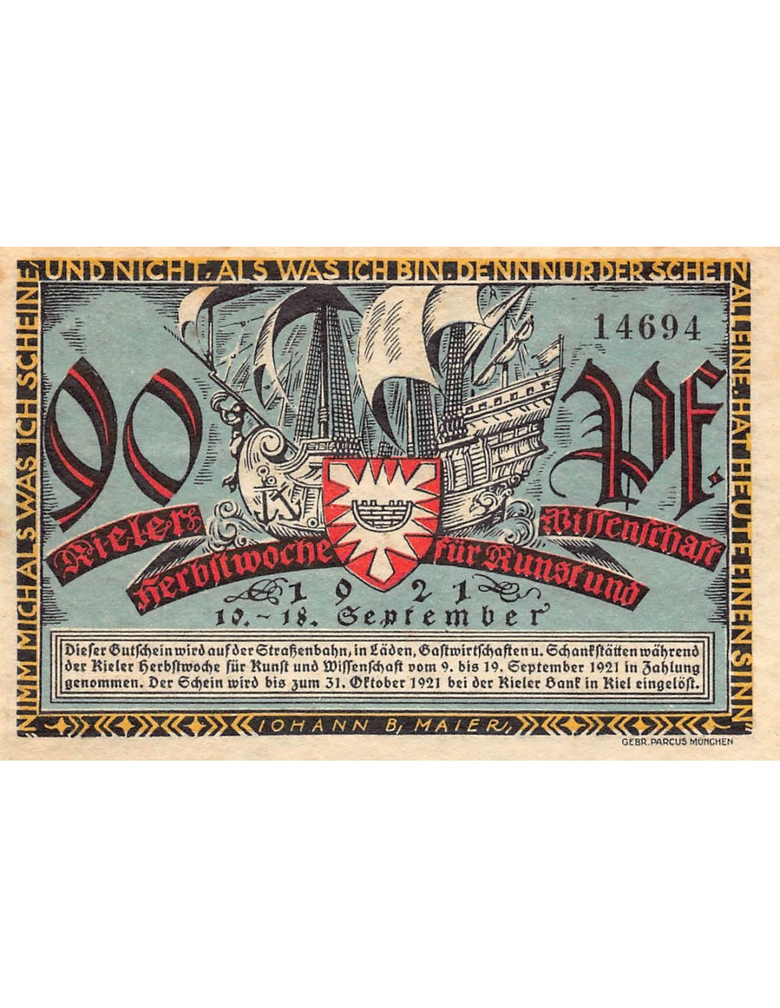 ALLEMAGNE, KIEL - 90 PFENNIG 1921