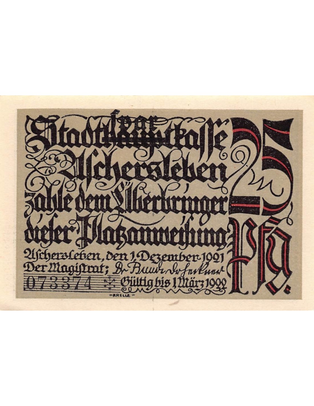 ALLEMAGNE, ASCHERSLEBEN - 25 PFENNIG 1921