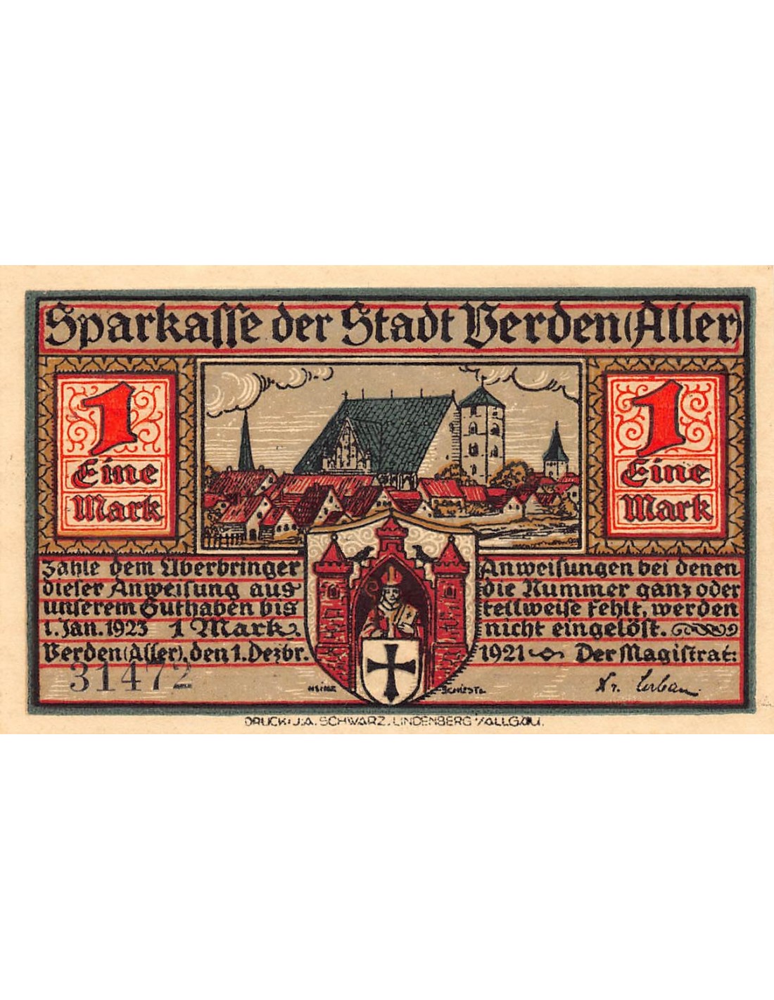 ALLEMAGNE, VERDEN - 1 MARK 1921