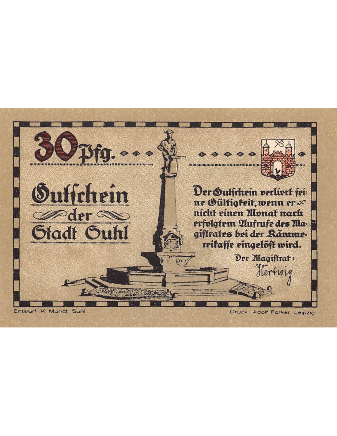 Allemagne ALLEMAGNE SUHL - 30 PFENNIG