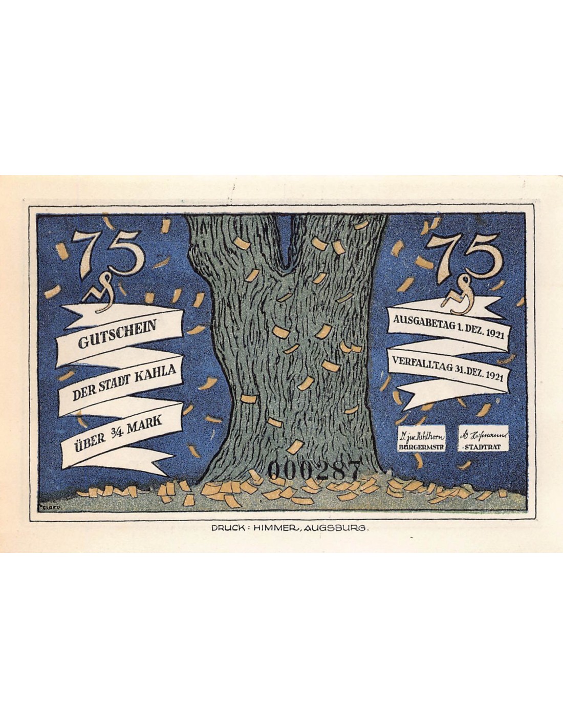 ALLEMAGNE, KAHLA - 75 PFENNIG 1921