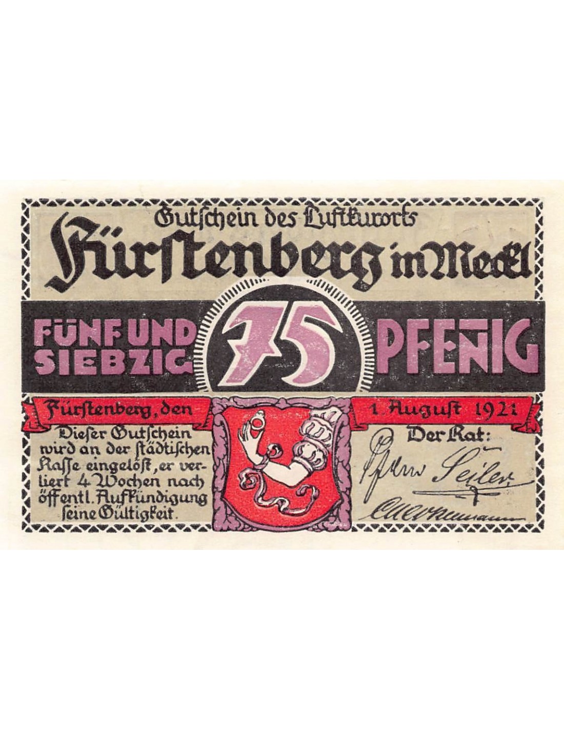 ALLEMAGNE, FÜRSTENBERG - 75 PFENNIG 1921