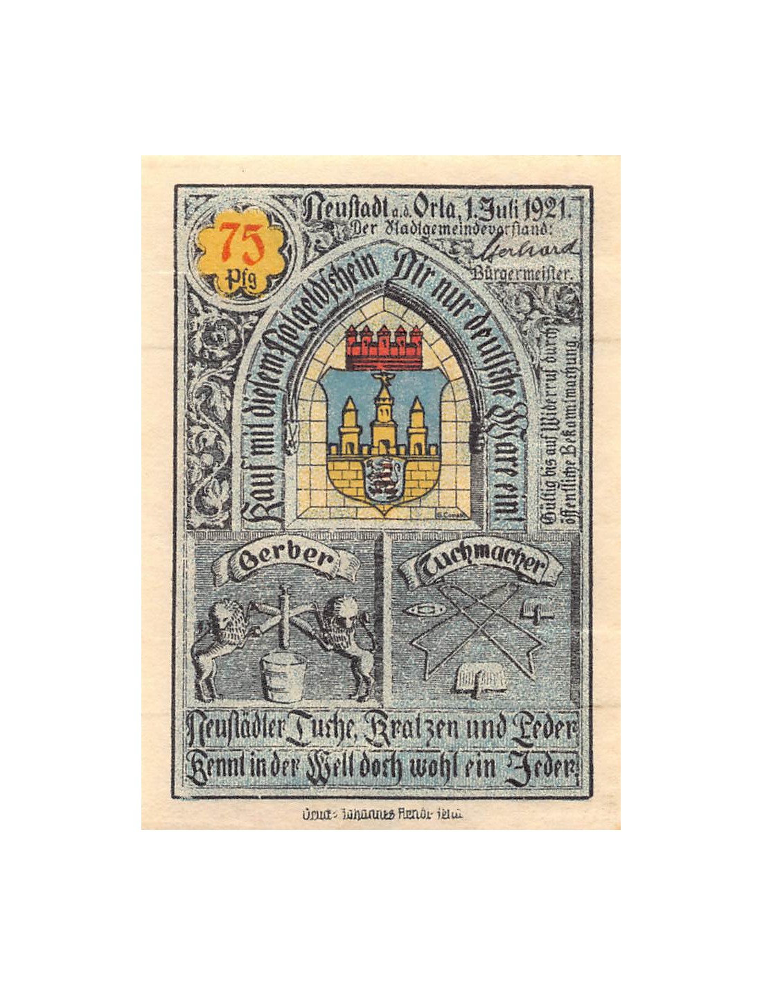 Allemagne ALLEMAGNE NEUSTADT AN DER ORLA - 75 PFENNIG 1921