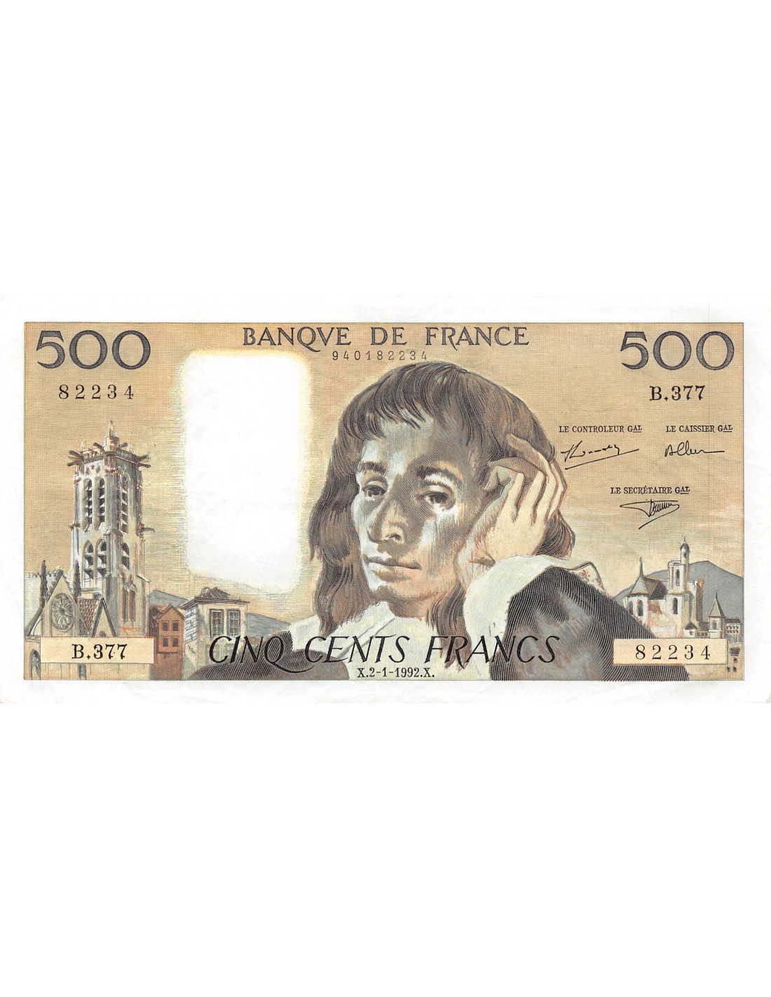 FRANCE - 500 FRANCS PASCAL 02/01/1992 - SÉRIE B.377 - TTB+