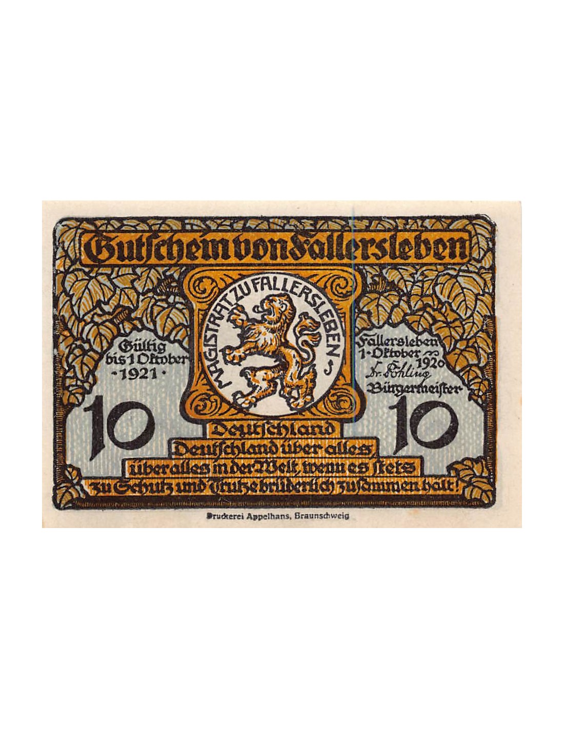 Allemagne ALLEMAGNE FALLERSLEBEN - 10 PFENNIG 1921