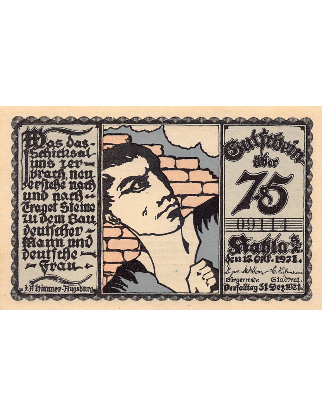 Allemagne ALLEMAGNE KAHLA - 75 PFENNIG 1921