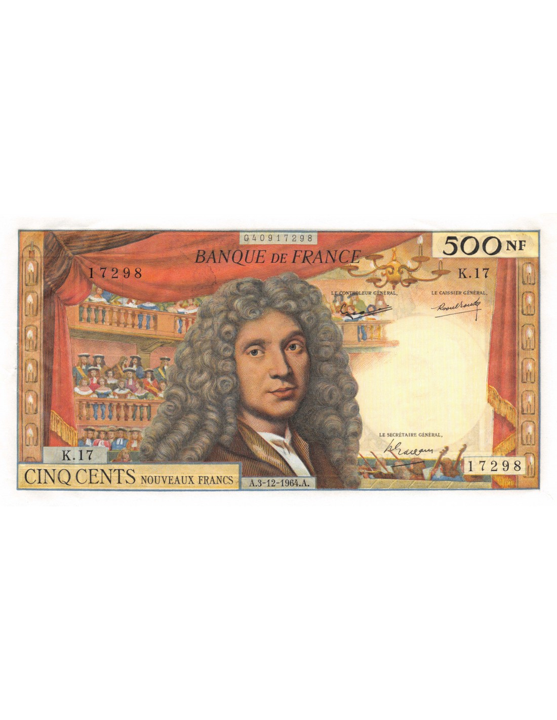 FRANCE, MOLIERE, 500 NF Nouveaux Francs 03.12.1964