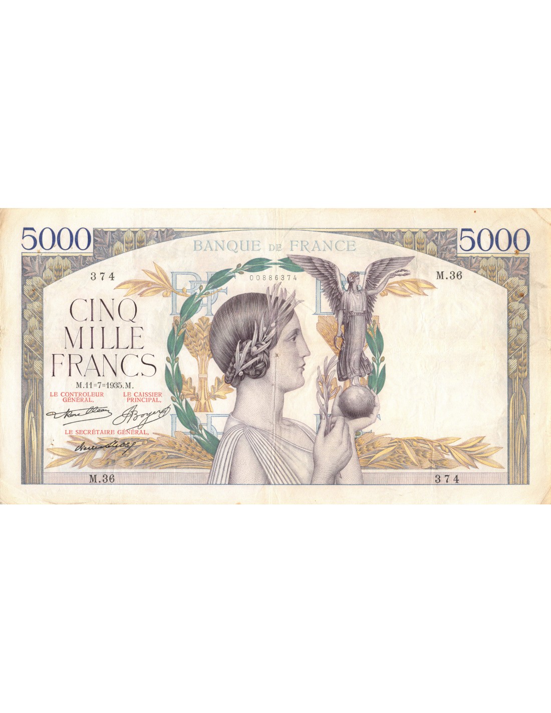 FRANCE, VICTOIRE Type 1934, 5000 FRANCS 11.07.1935
