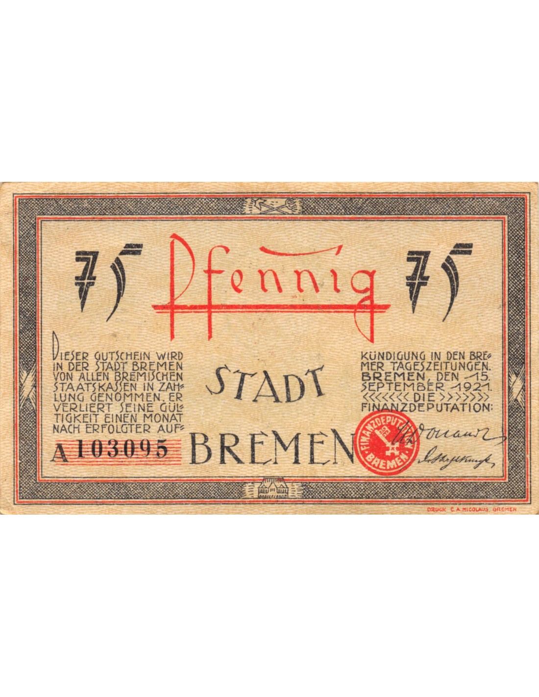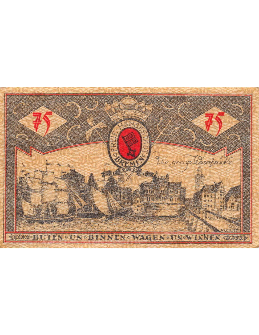 ALLEMAGNE, BRÈME - 75 PFENNIG 1921