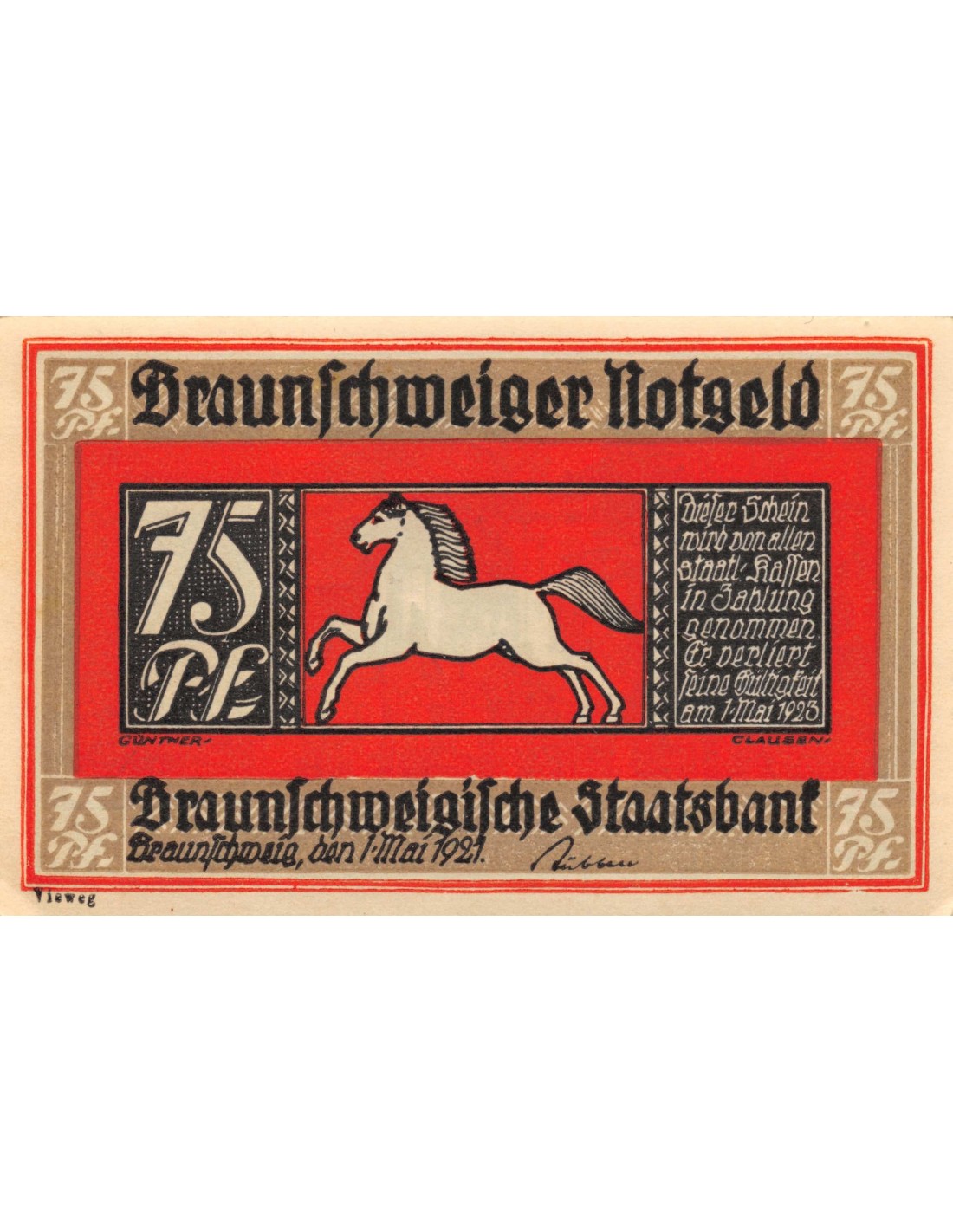ALLEMAGNE, BRAUNSCHWEIG - 75 PFENNIG 1921