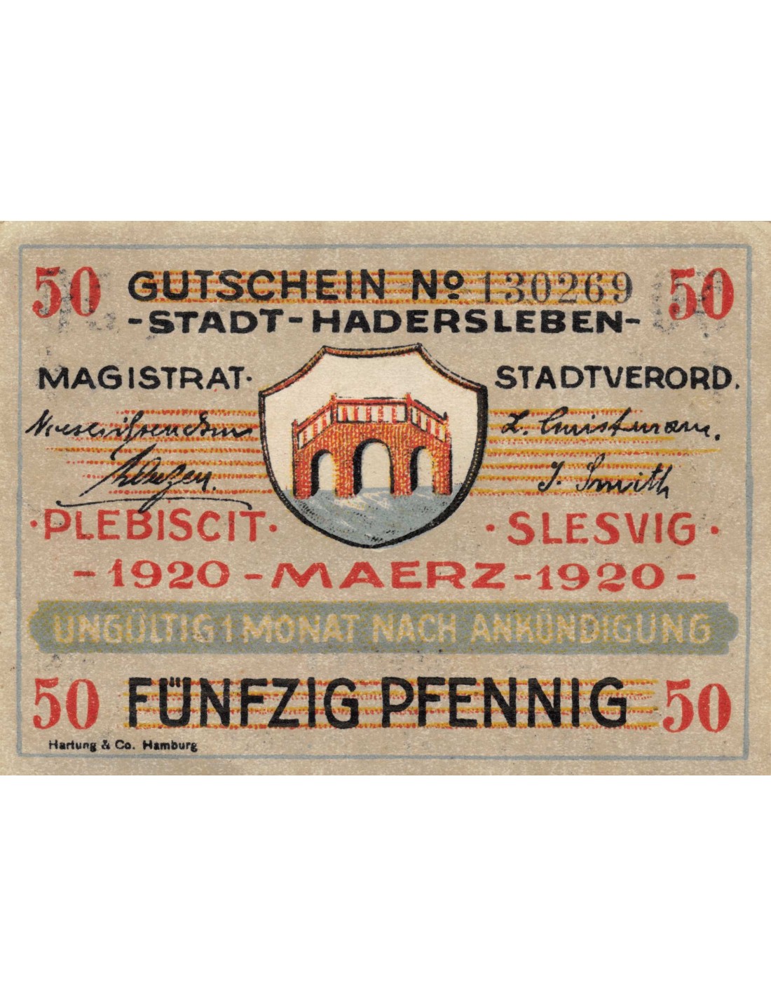 DANEMARK, ALLEMAGNE, HADERSLEBEN - 50 PFENNIG 1920