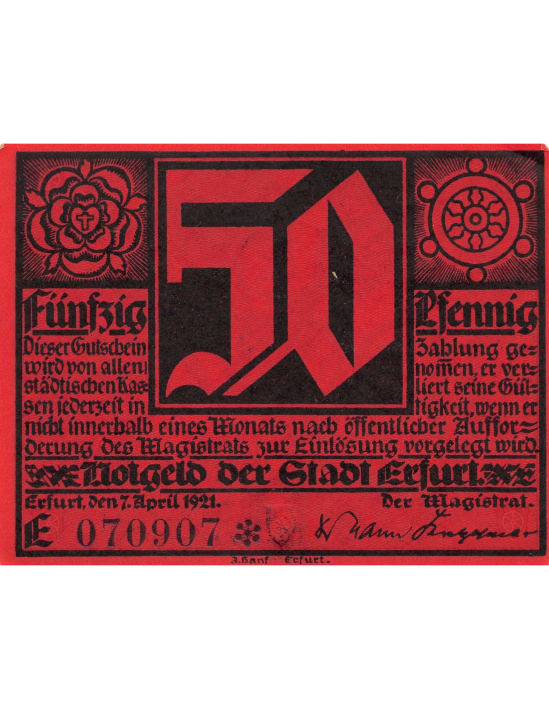 ALLEMAGNE, ERFURT - 50 PFENNIG 1921