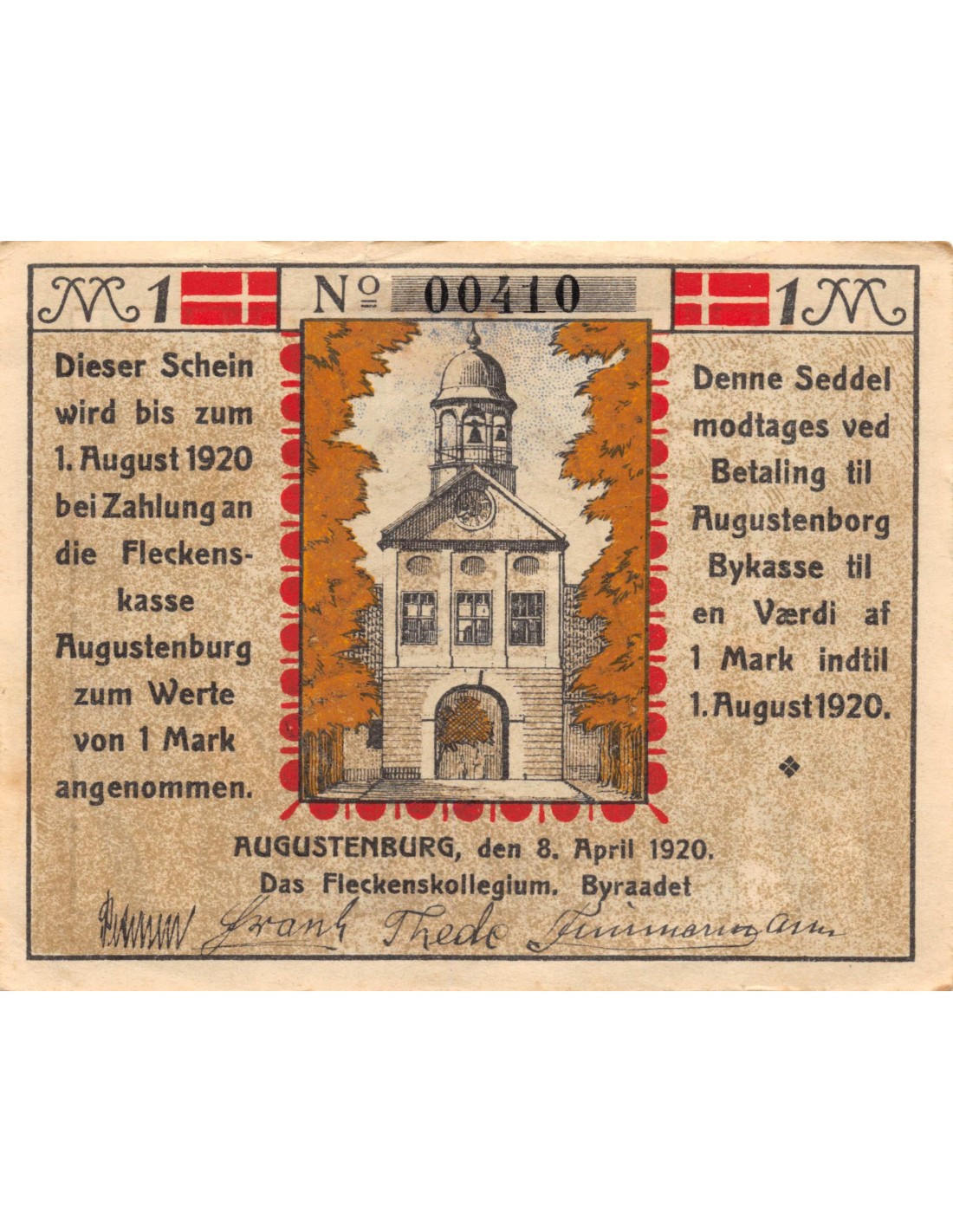 DANEMARK, ALLEMAGNE, AUGUSTENBORG - 1 MARK  1920