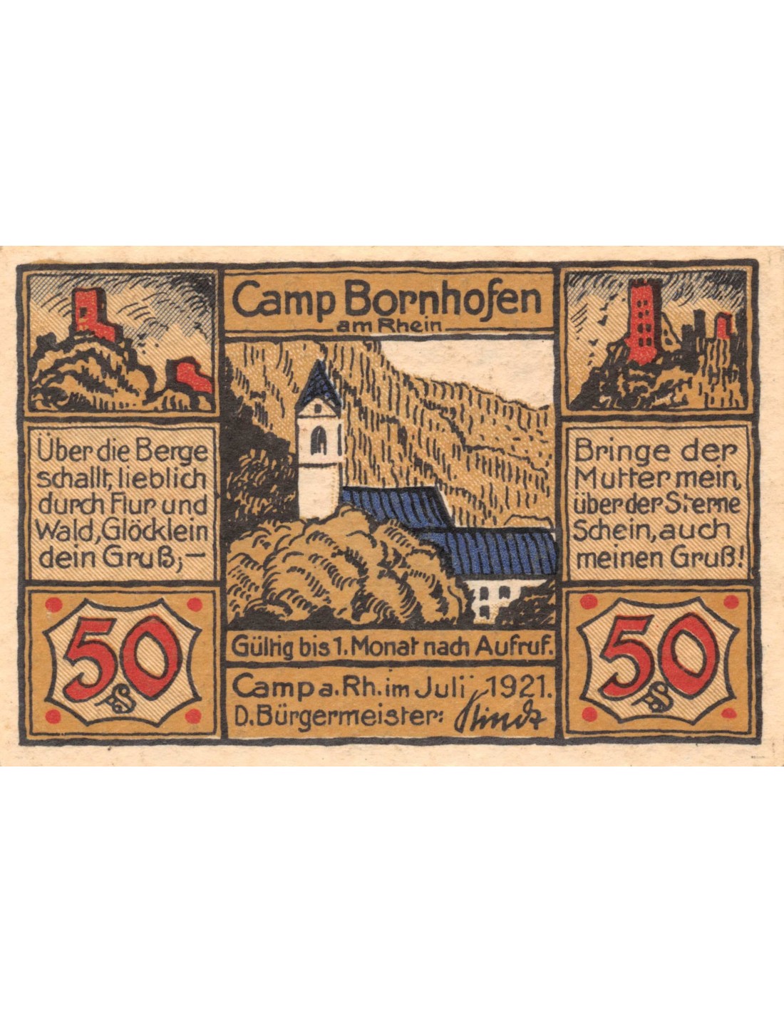 ALLEMAGNE, KAMP BORNHOFEN - 50 PFENNIG 1921
