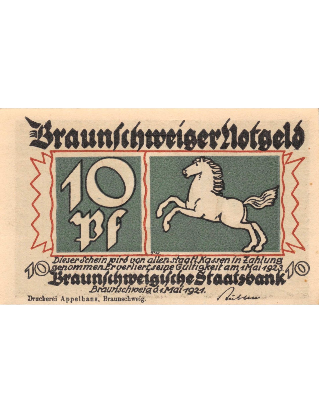 ALLEMAGNE, BRAUNSCHWEIG - 10 PFENNIG 1921