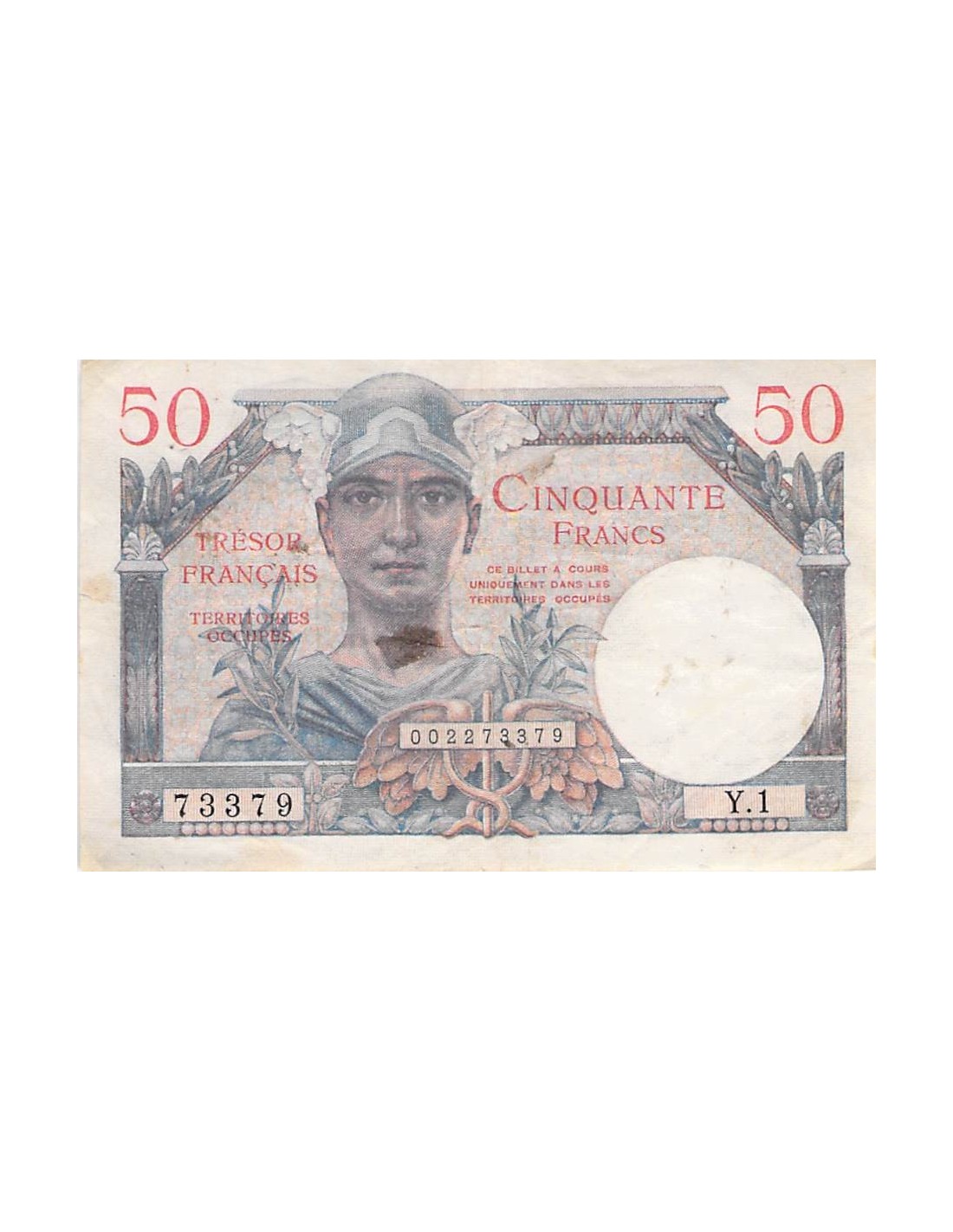 TRÉSOR FRANÇAIS, TERRITOIRES OCCUPÉS - 50 FRANCS 1947 - SÉRIE Y.1 - TTB