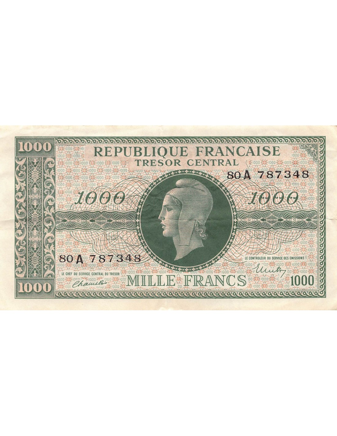 TRÉSOR CENTRAL, MARIANNE - 1000 FRANCS 1945 SÉRIE A - TTB+