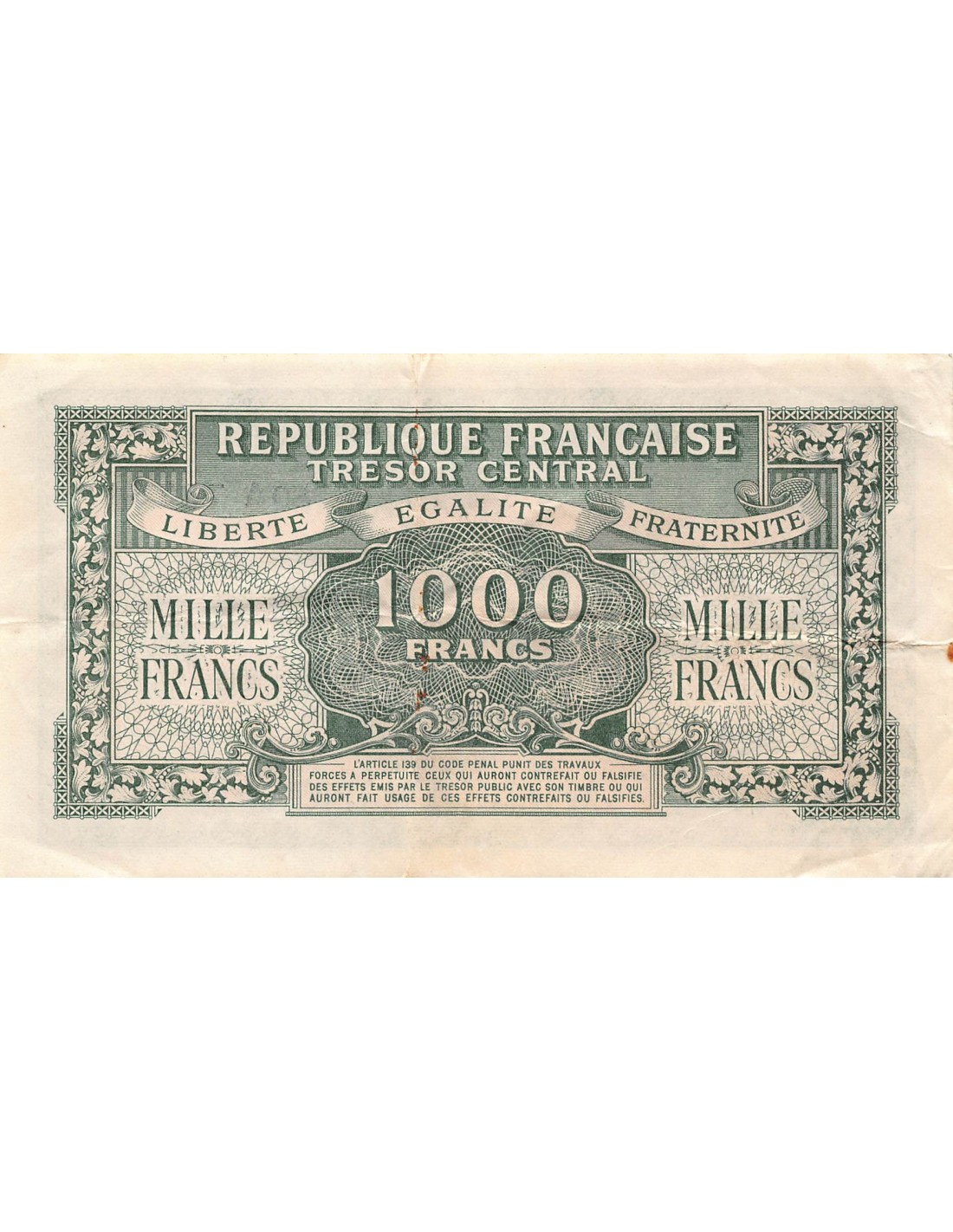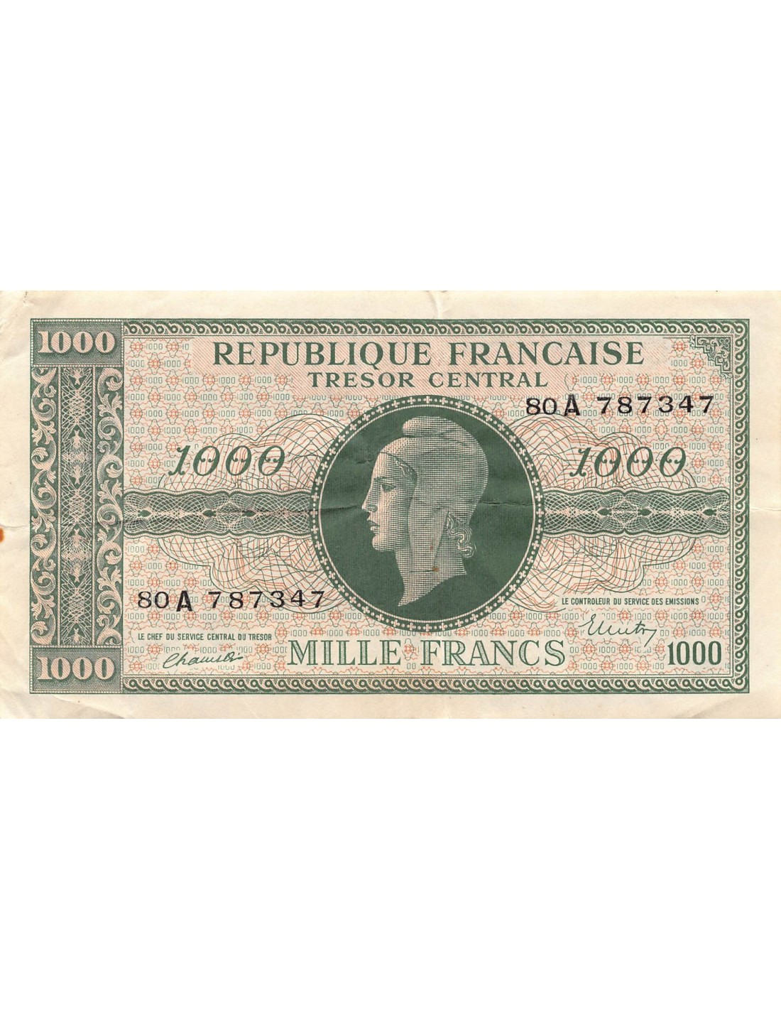 TRÉSOR CENTRAL, MARIANNE - 1000 FRANCS 1945 SÉRIE A - TTB