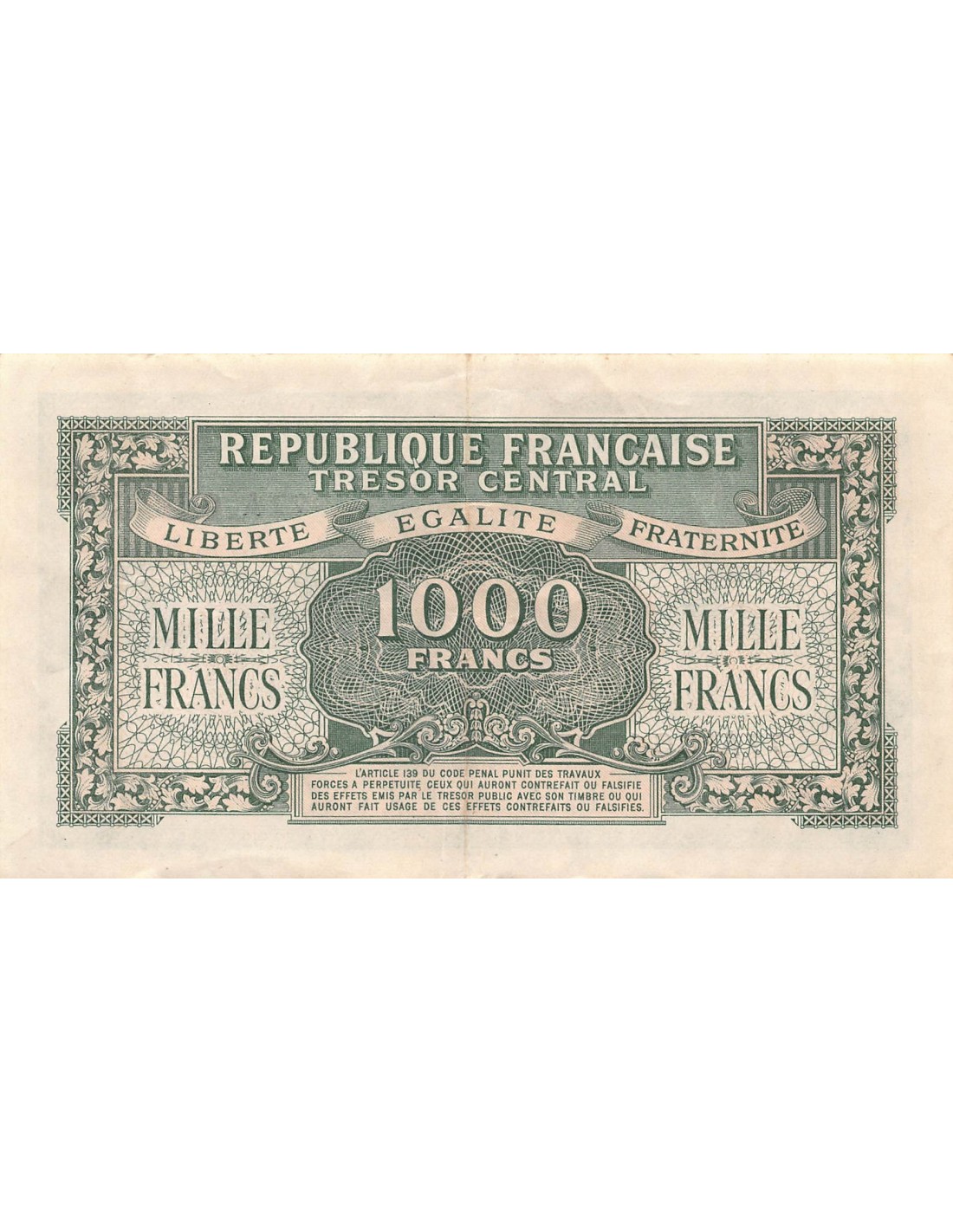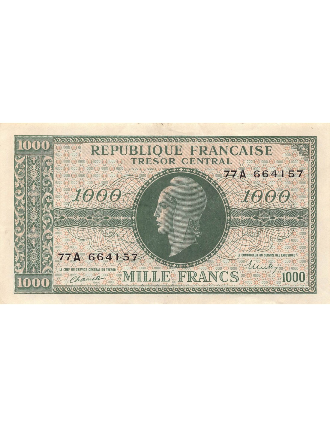 TRÉSOR CENTRAL, MARIANNE - 1000 FRANCS 1945 SÉRIE A - TTB