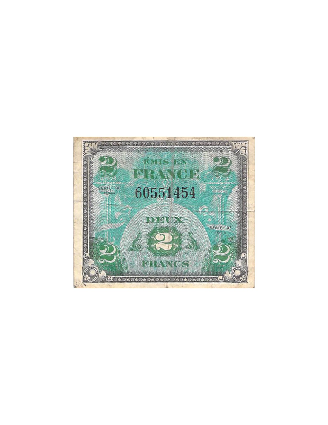 Vendu Billets du Trésor France IMPRESSION AMÉRICAINE - 2 FRANCS DRAPEAU Type 1944 - TB+ SUFFREN sf_19189 6,00 € non épinglé, plis, salissures, pas de manques View