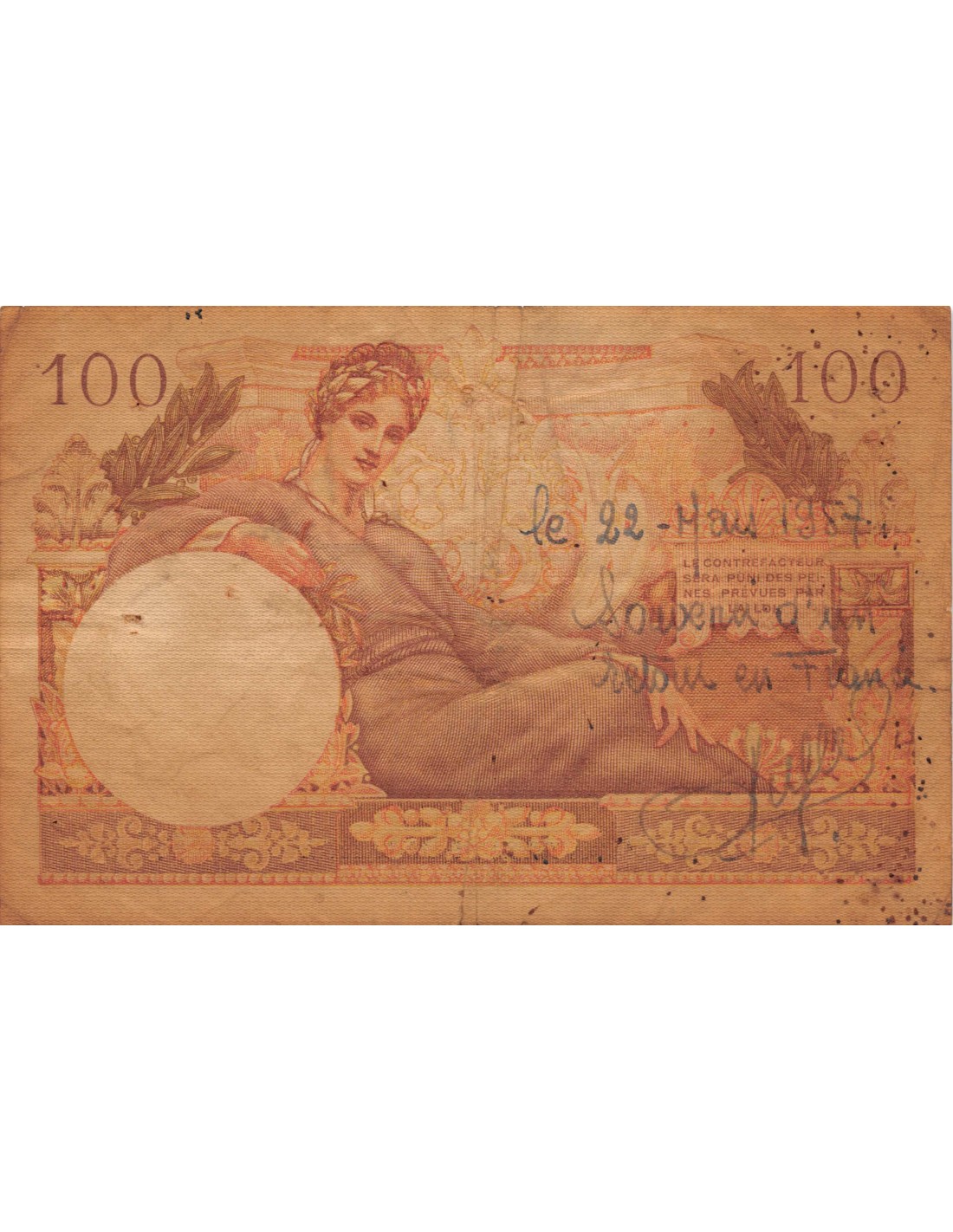 Vendu 100 Francs France IMPRESSION AMERICAINE, FRANCE - 100 FRANCS 1944 SERIE 5 SUFFREN sf_20243 4,00 € épinglages, plis, salissures, taches View