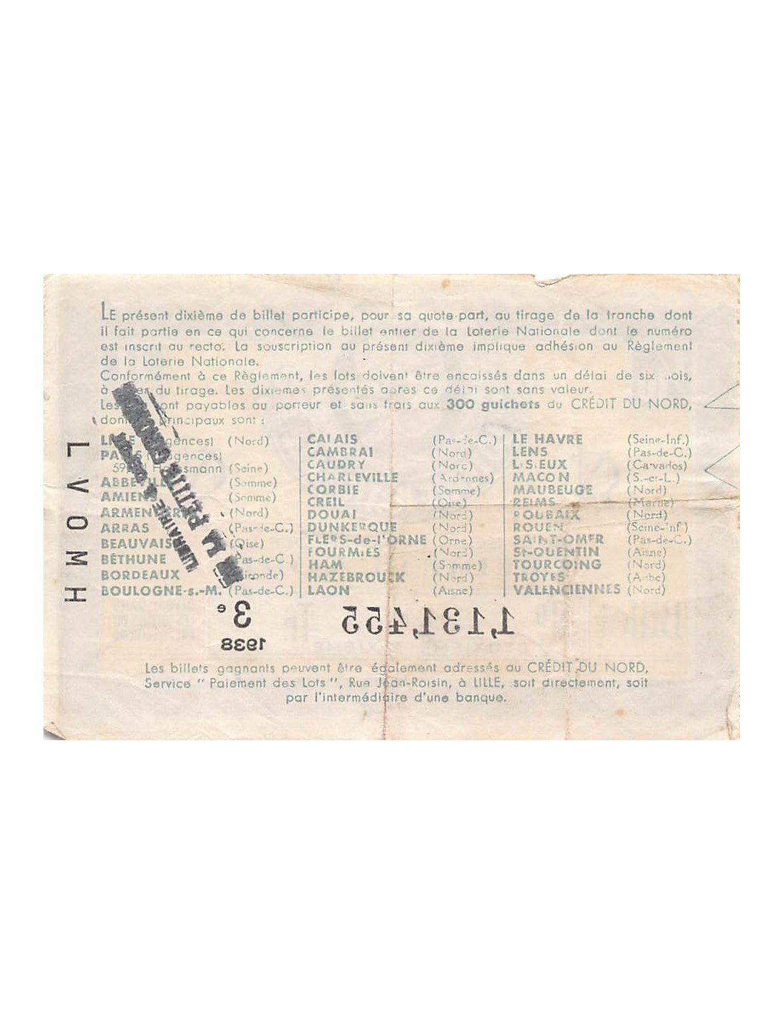 En stock Billets Français France Billet De Loterie Nationale, Sociétés Postales De Mutualité - 1938 SUFFREN sf_13571 5,00 € Billet de Loterie Nationale, Sociétés Postales de Mutualité - 1938 Ajouter au panier