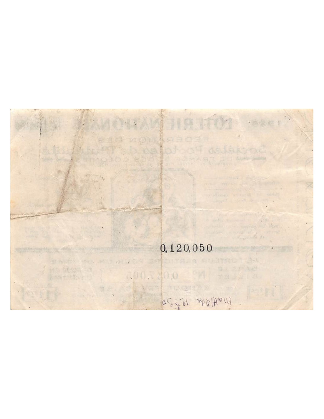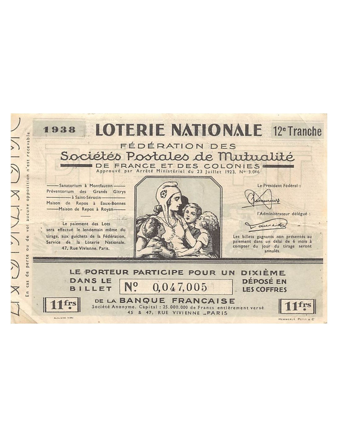 Billet de Loterie Nationale, Sociétés Postales de Mutualité - 1938