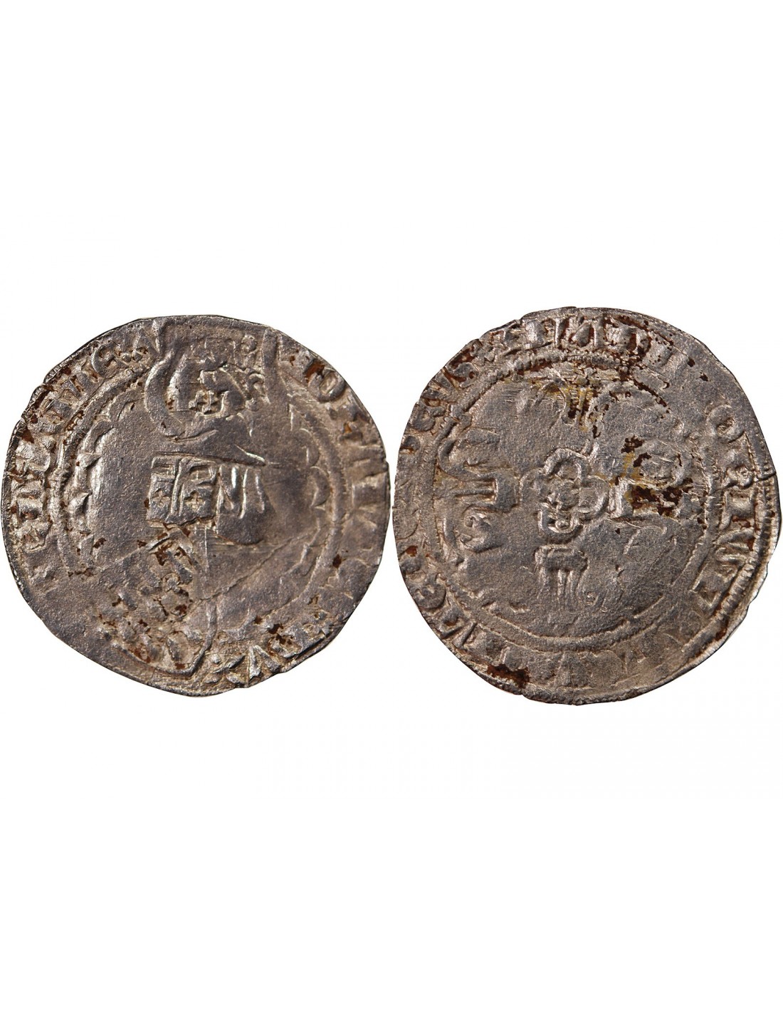 DUCHÉ DE BRETAGNE, JEAN IV - GROS AU HEAUME ARGENT 1345 / 1399 VANNES