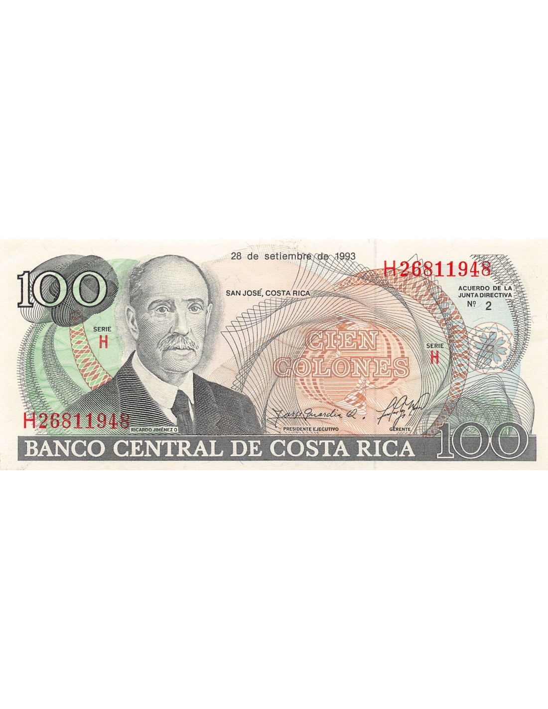 COSTA RICA, RICARDO JIMENEZ - 100 COLONES 1993 - NEUF