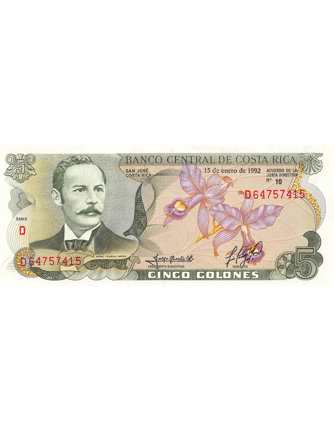 Costa Rica Costa Rica, Rafael Yglesias Castro - 5 Colones 1992 - Neuf
