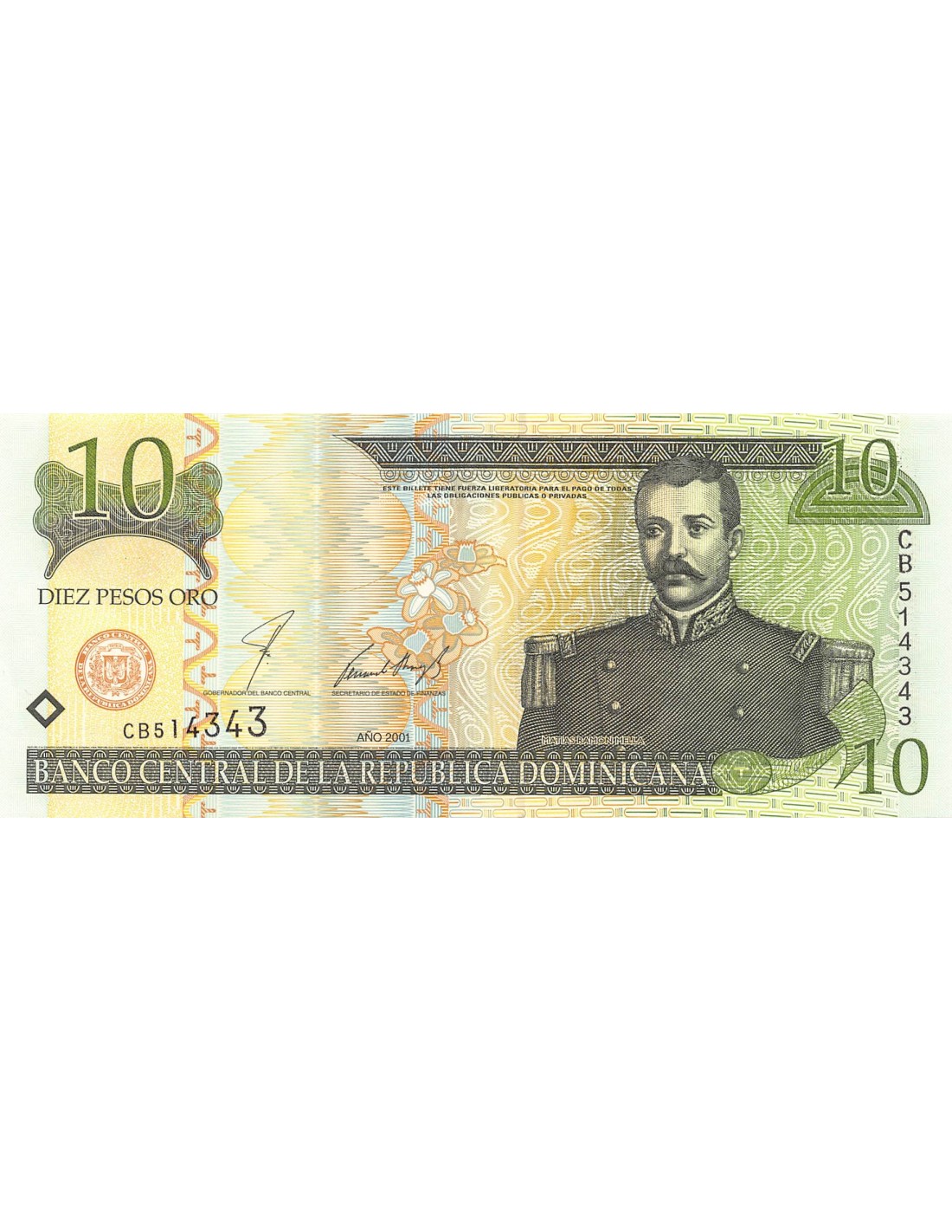 Republique Dominicaine, Matias Ramon Mella - 10 Pesos Oro 2001 - P.Neuf