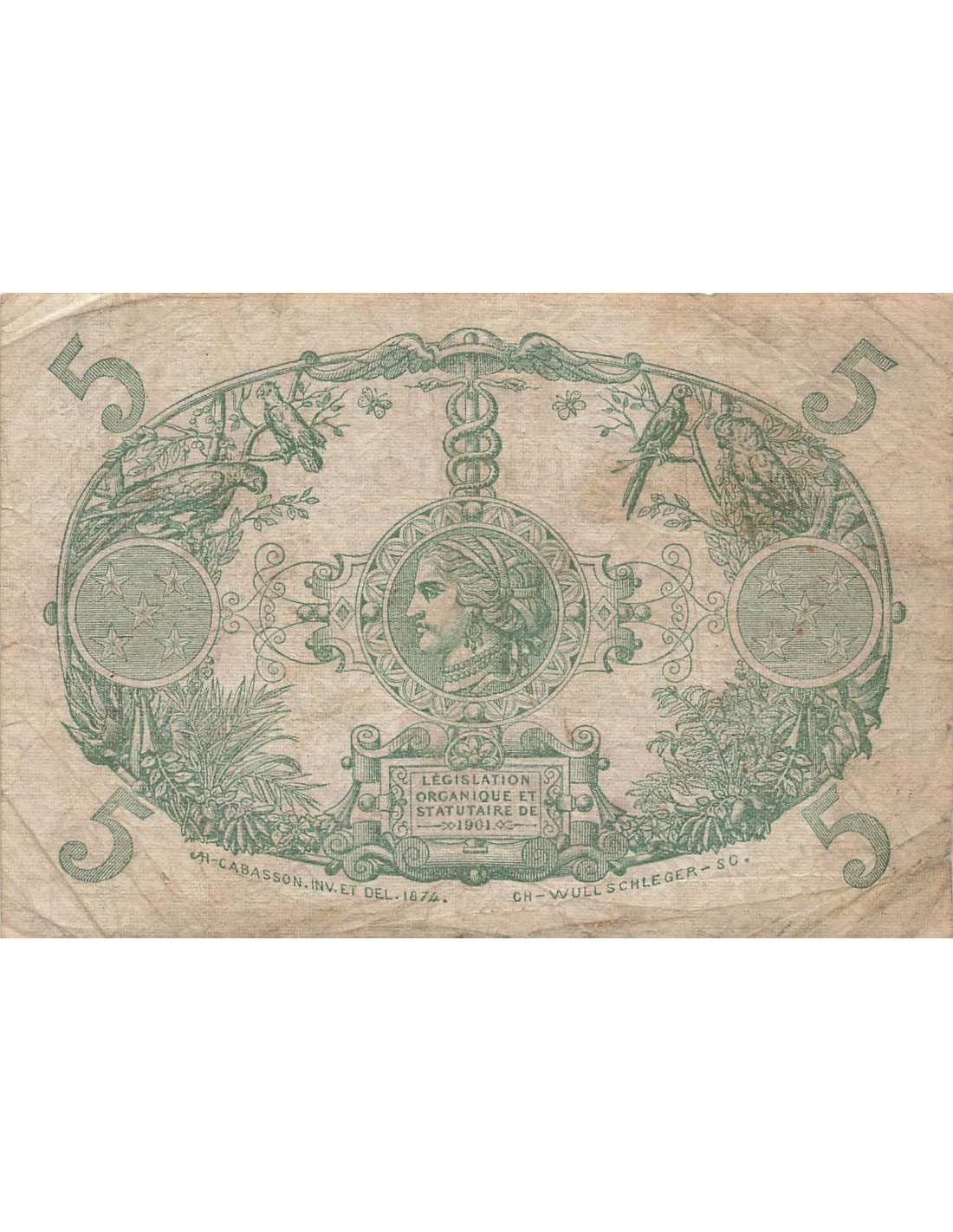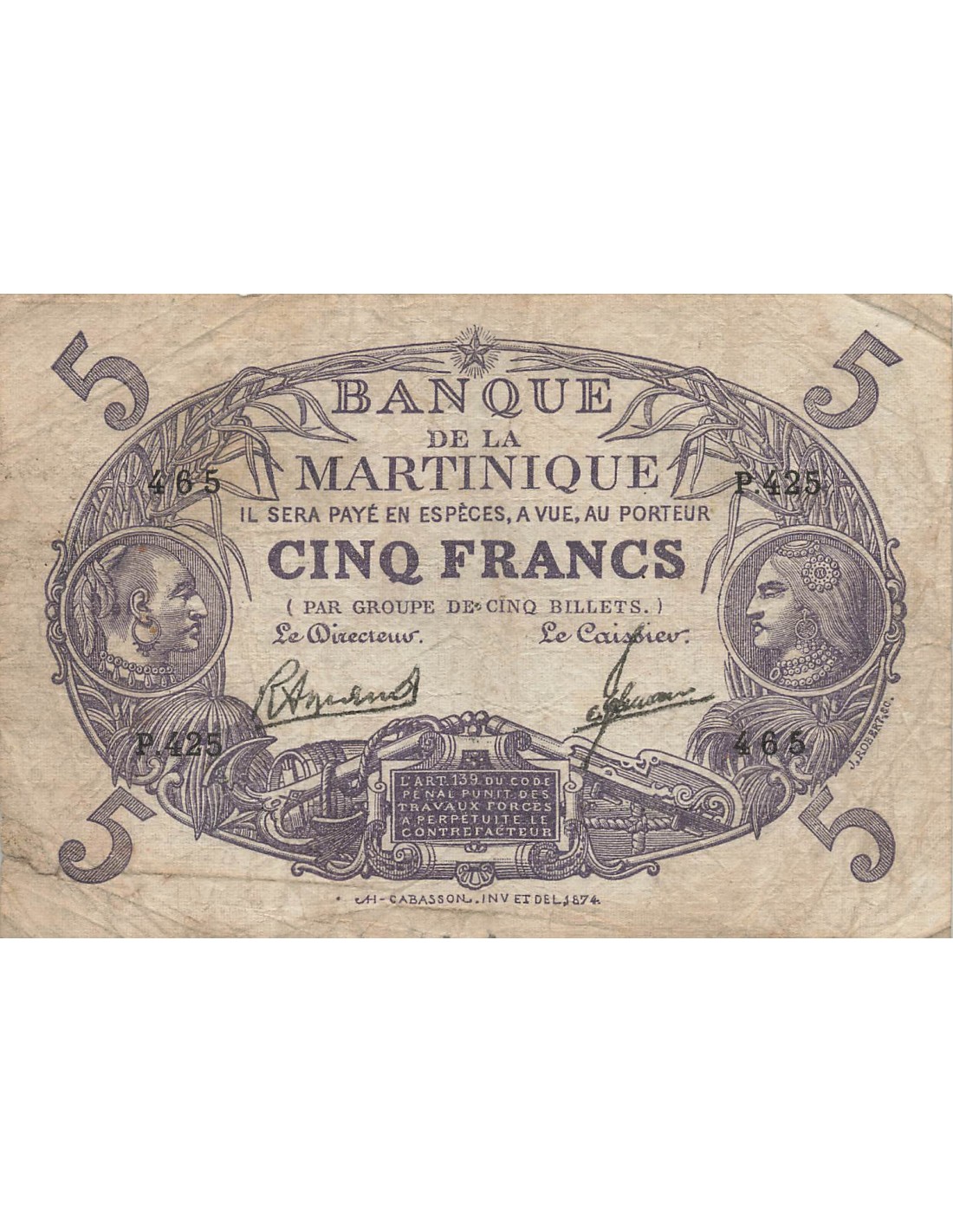 Martinique 5 Francs - Cabasson violet - ND (1934-45) - P.6