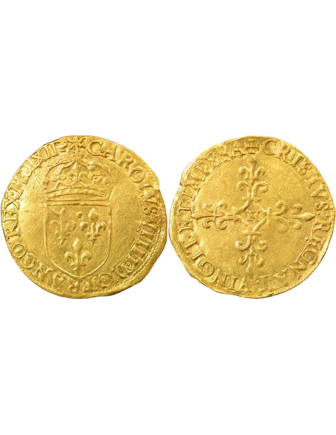 Avers : CAROLVS + VIIII . D : G : FRANCO : REX . MDLXII