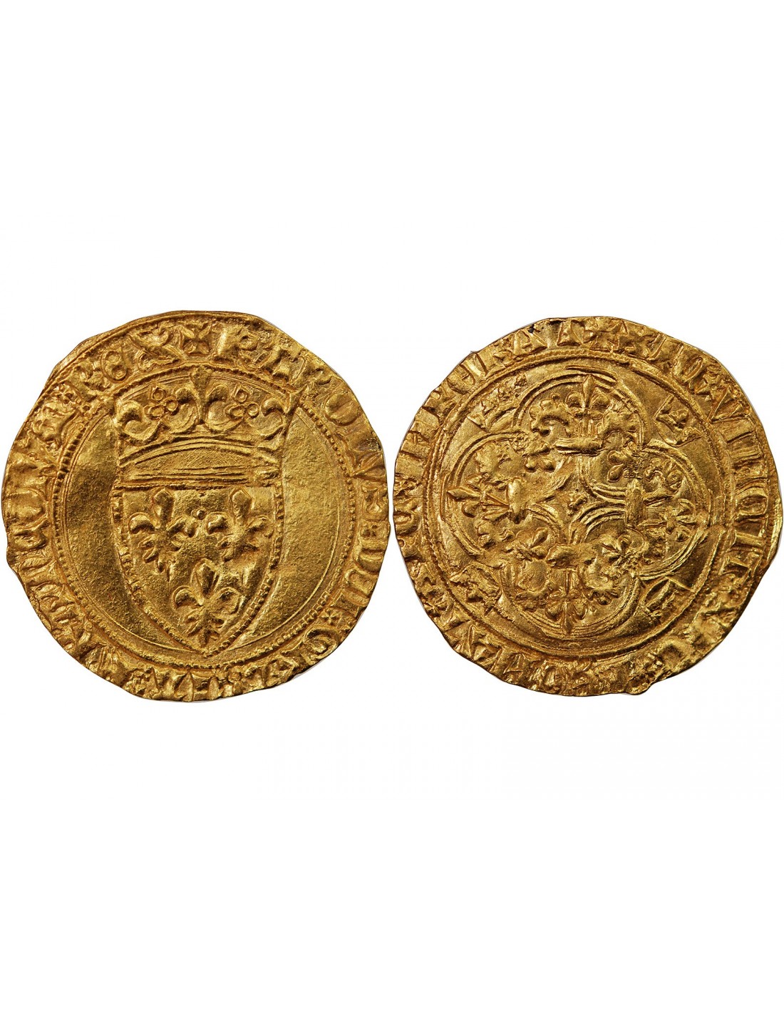 CHARLES VI LE FOU - ECU D'OR A LA COURONNE 1411 TROYES