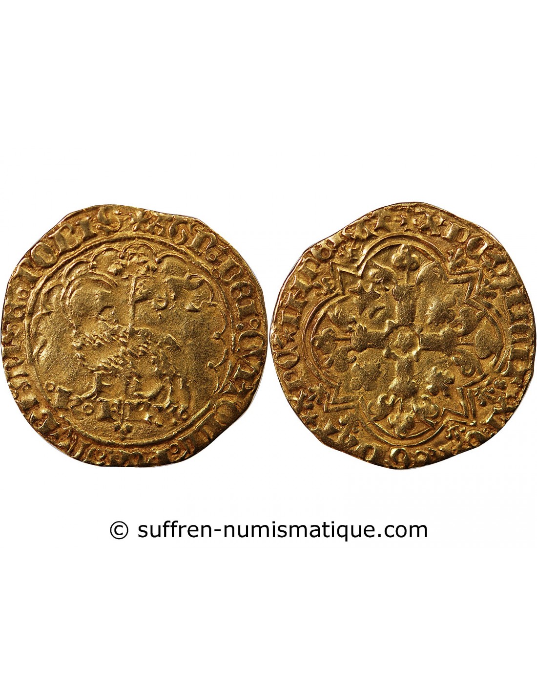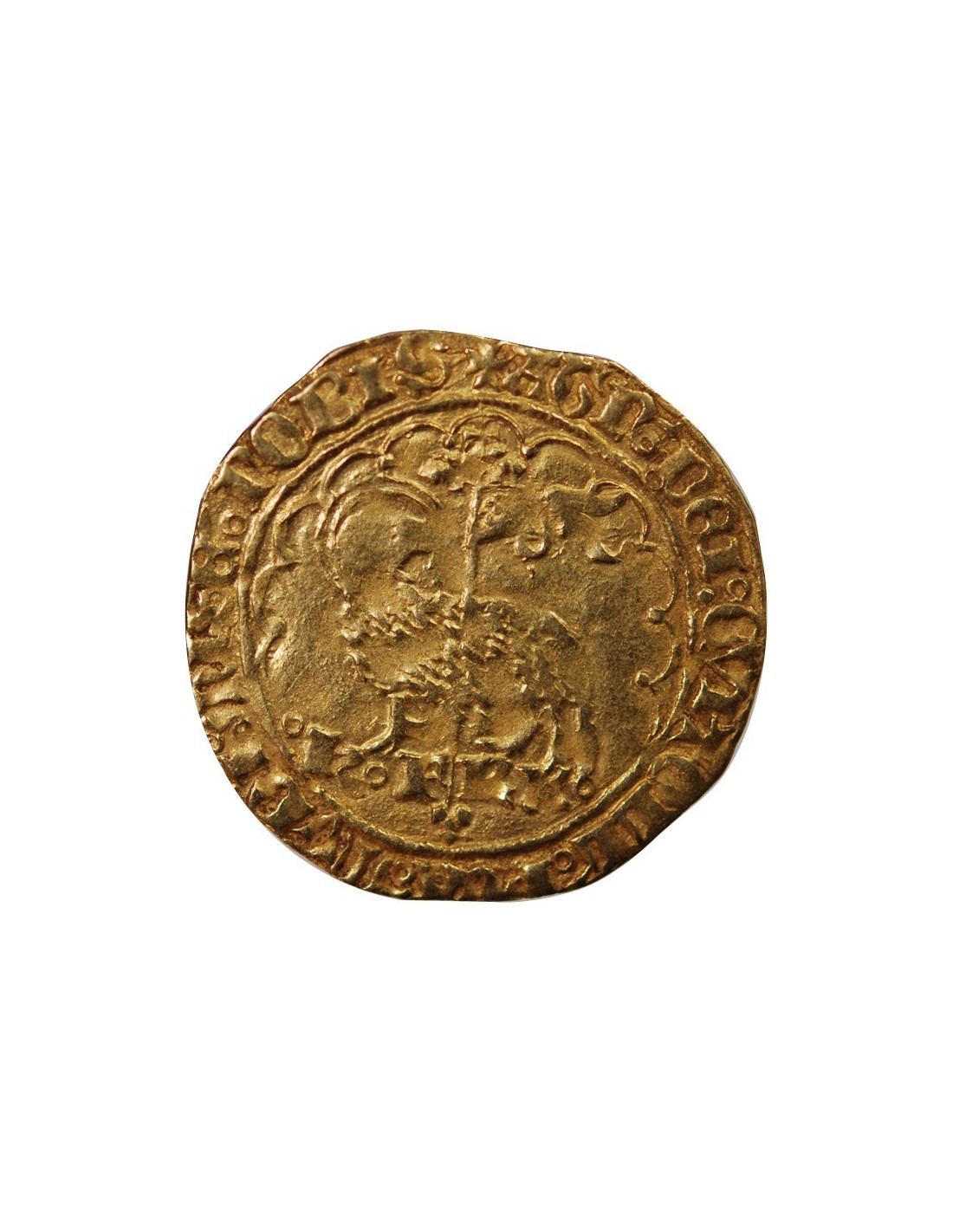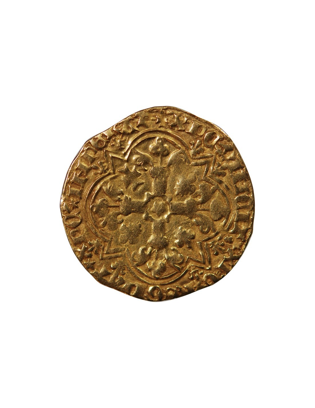 R/ Croix tréflée et feuillue cantonné de quatre lis dans un quadrilobe, cantonné de huit lis.