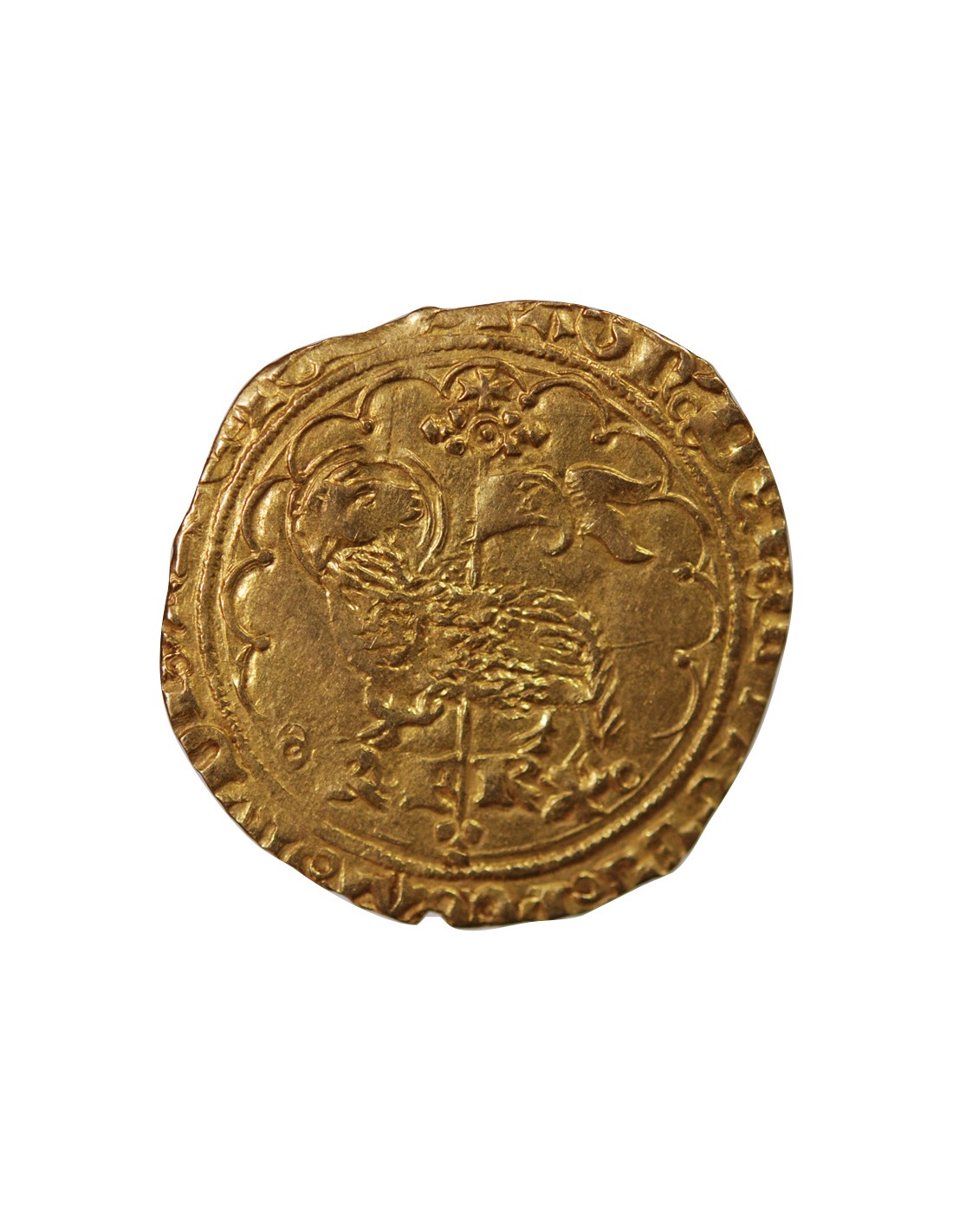 R/ Croix tréflée et feuillue cantonné de trois lis et d'une croisette dans un quadrilobe, cantonné de huit lis.