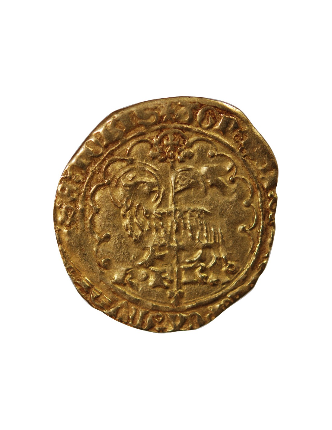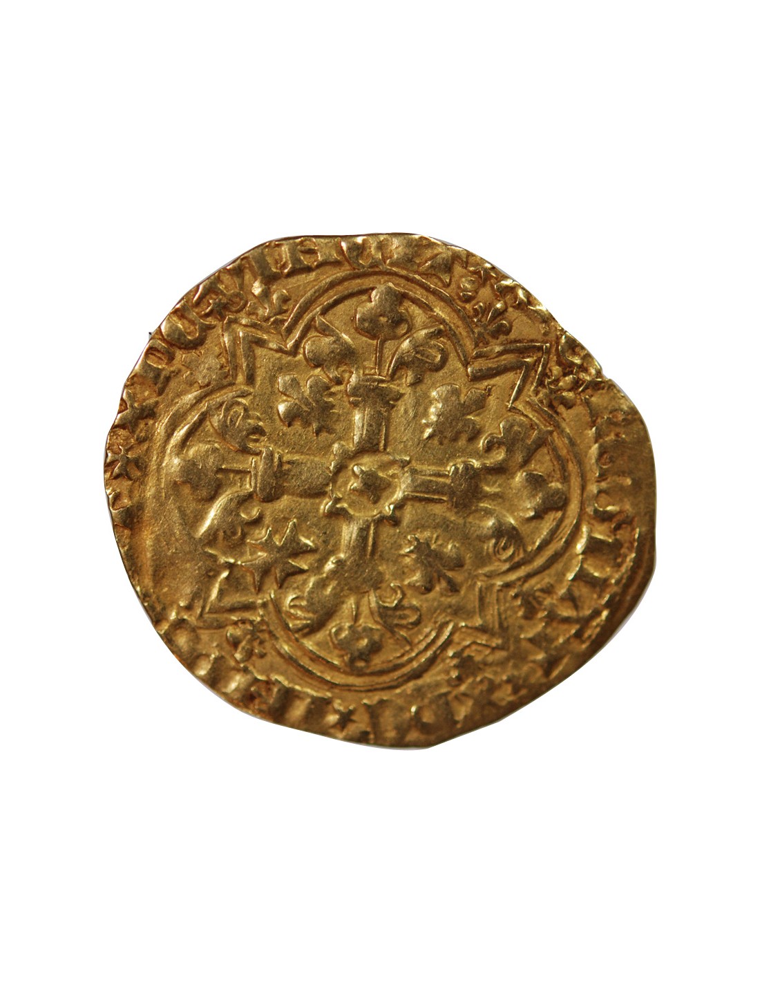 R/ Croix tréflée et feuillue cantonné de trois lis et d'une croisette dans un quadrilobe, cantonné de huit lis.