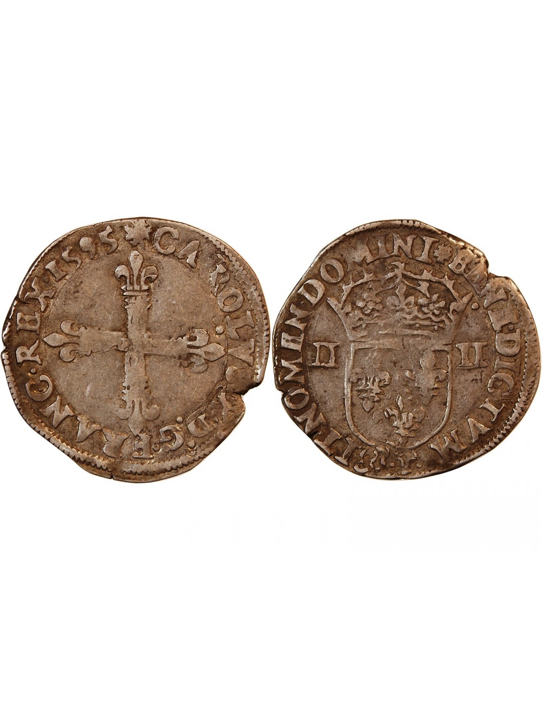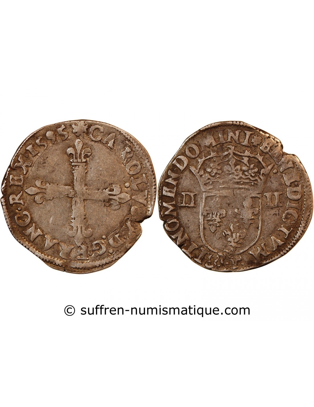 CHARLES X CARDINAL DE BOURBON - 1/4 ECU ARGENT 1595 NANTES