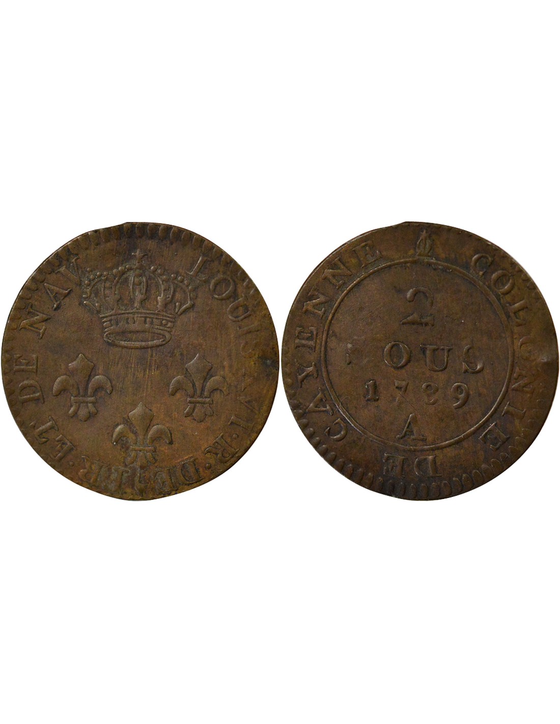 Guyane Française Cayenne, Louis XVI - 2 Sous - 1789 A Paris