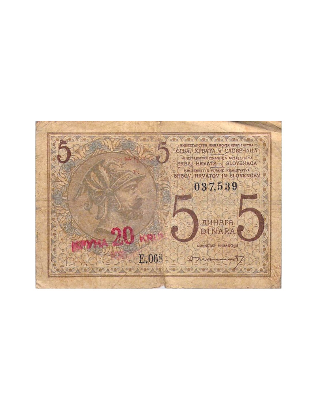 YOUGOSLAVIE - 20 KRONEN SUR 5 DINARS 1919