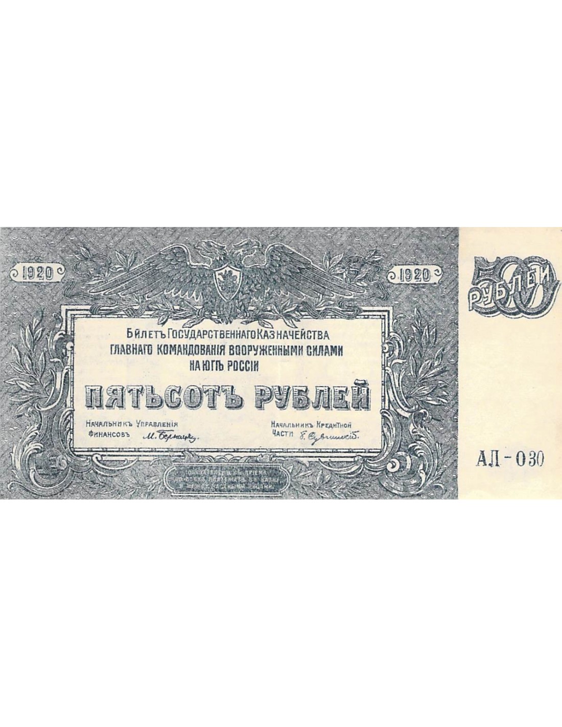 RUSSIE - 500 ROUBLES 1920 - SUP