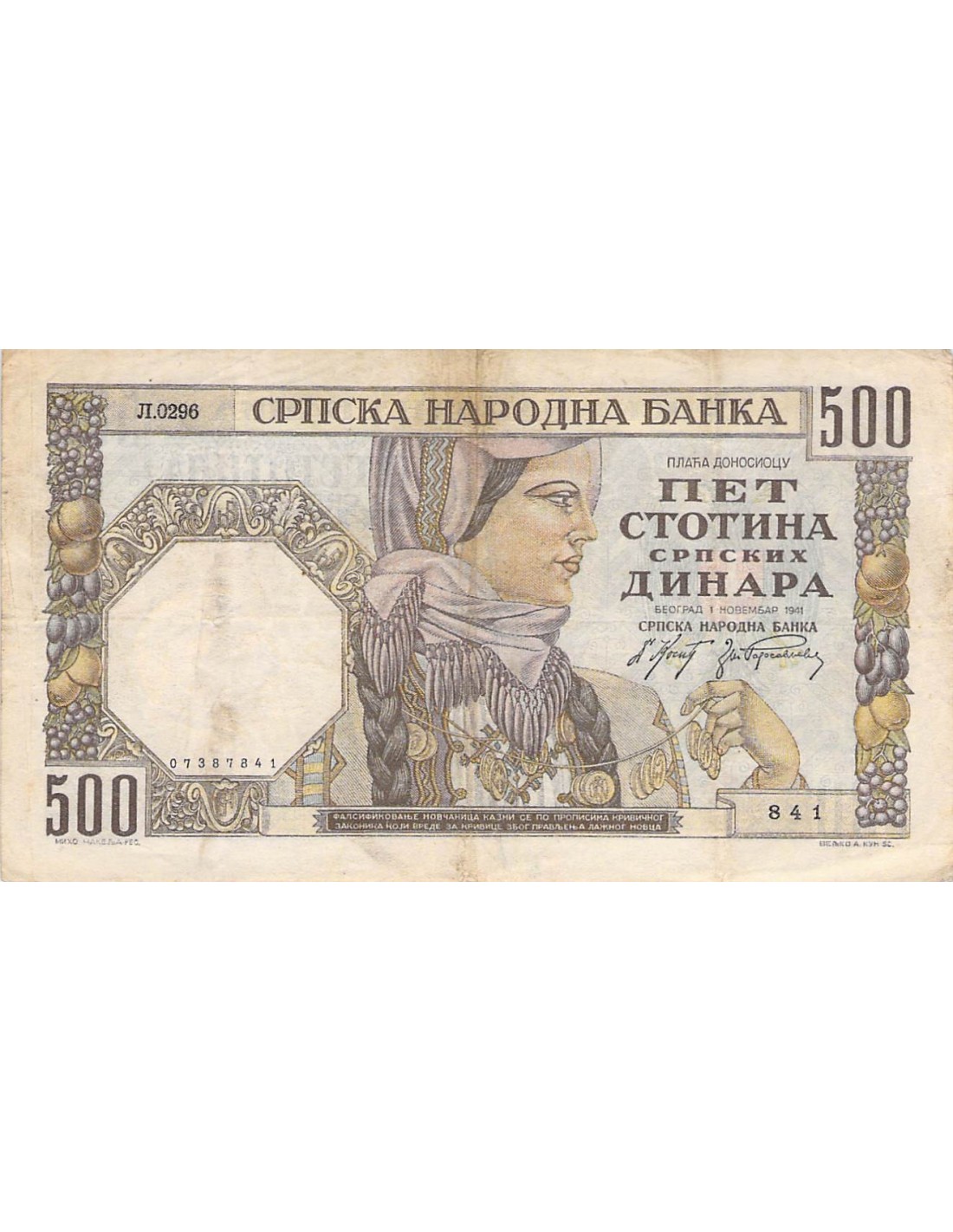 SERBIE, ALEXANDRE Ier - 500 DINARA 01/11/1941